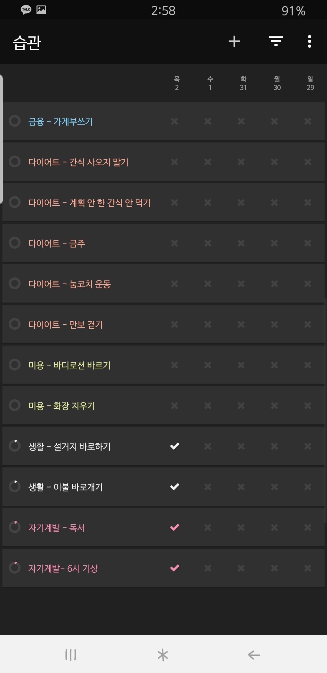 todoist habitify 등의 일정관리 어플을 깔아보았는데 원하는 바에 완벽히 들어맞진 않더라고요ㅠ 제가 원하는건 큰 프로젝트를 이루기 위한 하위의 일들을 습관처럼 계속하며 하루별로 진행한 갯수나 상황을 기록하고 실천한 데이터를 막대나 원그래프로 일/주/월/연도로 확인하고 싶은데 이런 비슷한 어플 없을까요? habitify는 한 일들의 그래프를 직관적이고 상세하게 볼 수 있어 좋은데 진행상황을 기록할 수 없는게 아쉽습니다.ㅠㅠ * CONTAXND님에 의해서 AMA으로부터 게시물 이동되었습니다 (2020-01-02 12:09) * 관리사유 : 질문게시판으로 이동 0
