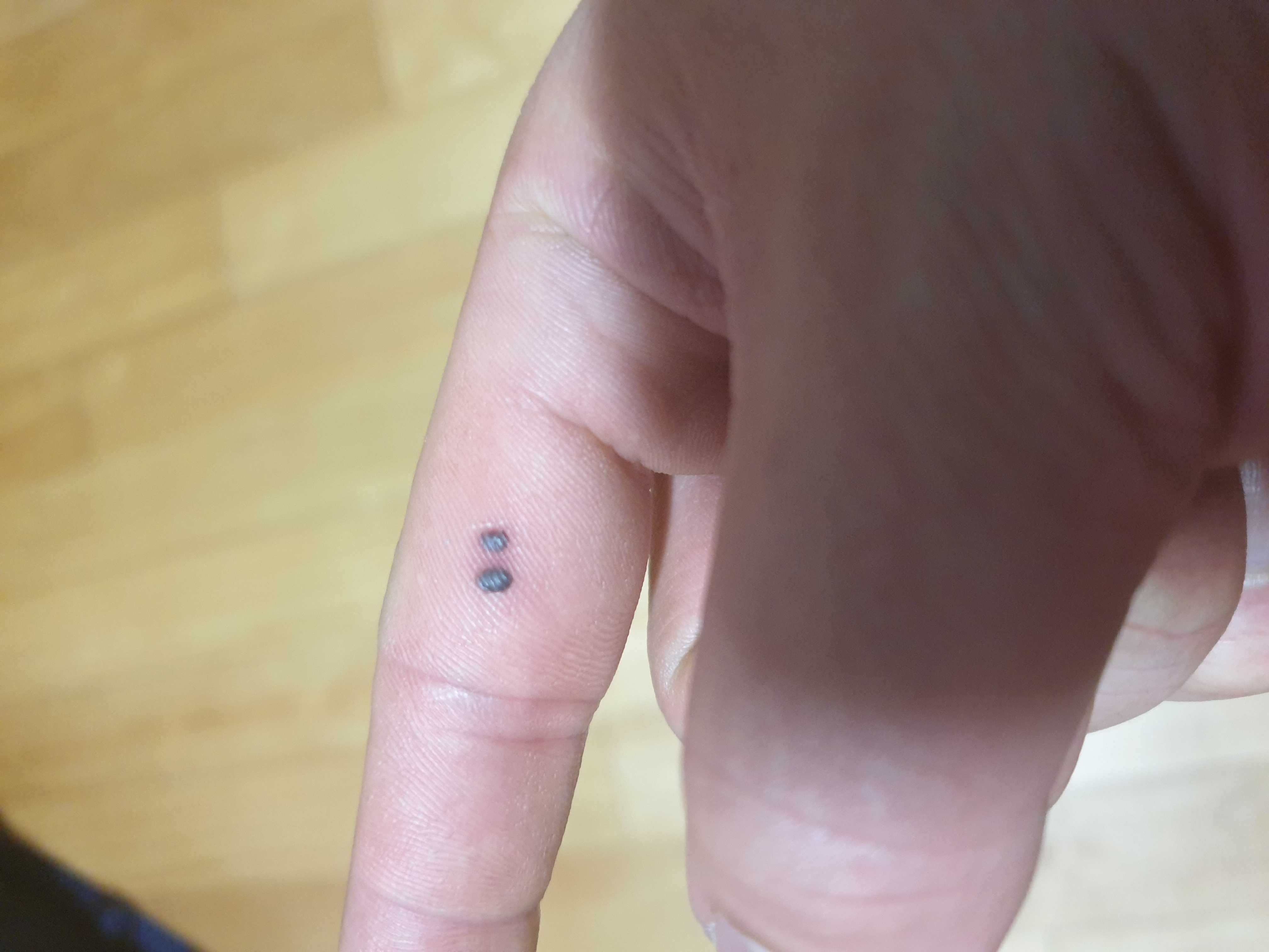 약간 쌀처럼 튀어나와있고 피가 검게 되었습니다