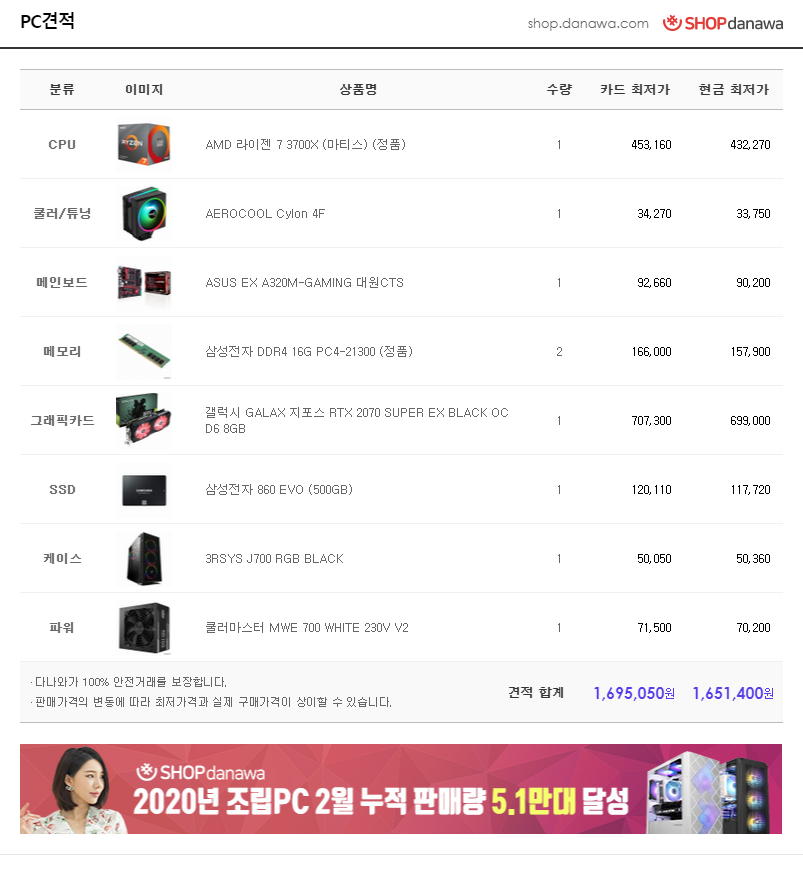 | File #1 | 2020.03.30_PC견적.png (200.3 KB), Download : 17 |