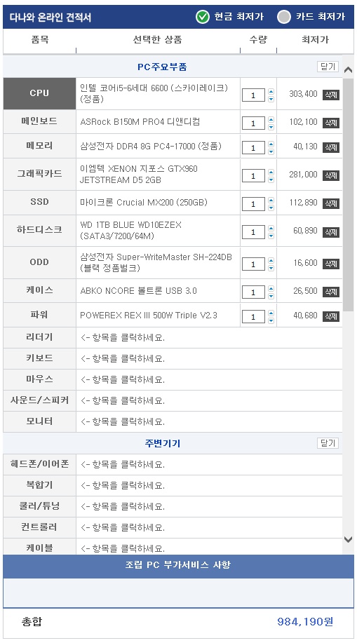 견적을 뽑아 보았는데 어떤지 평가좀 부탁드립니다