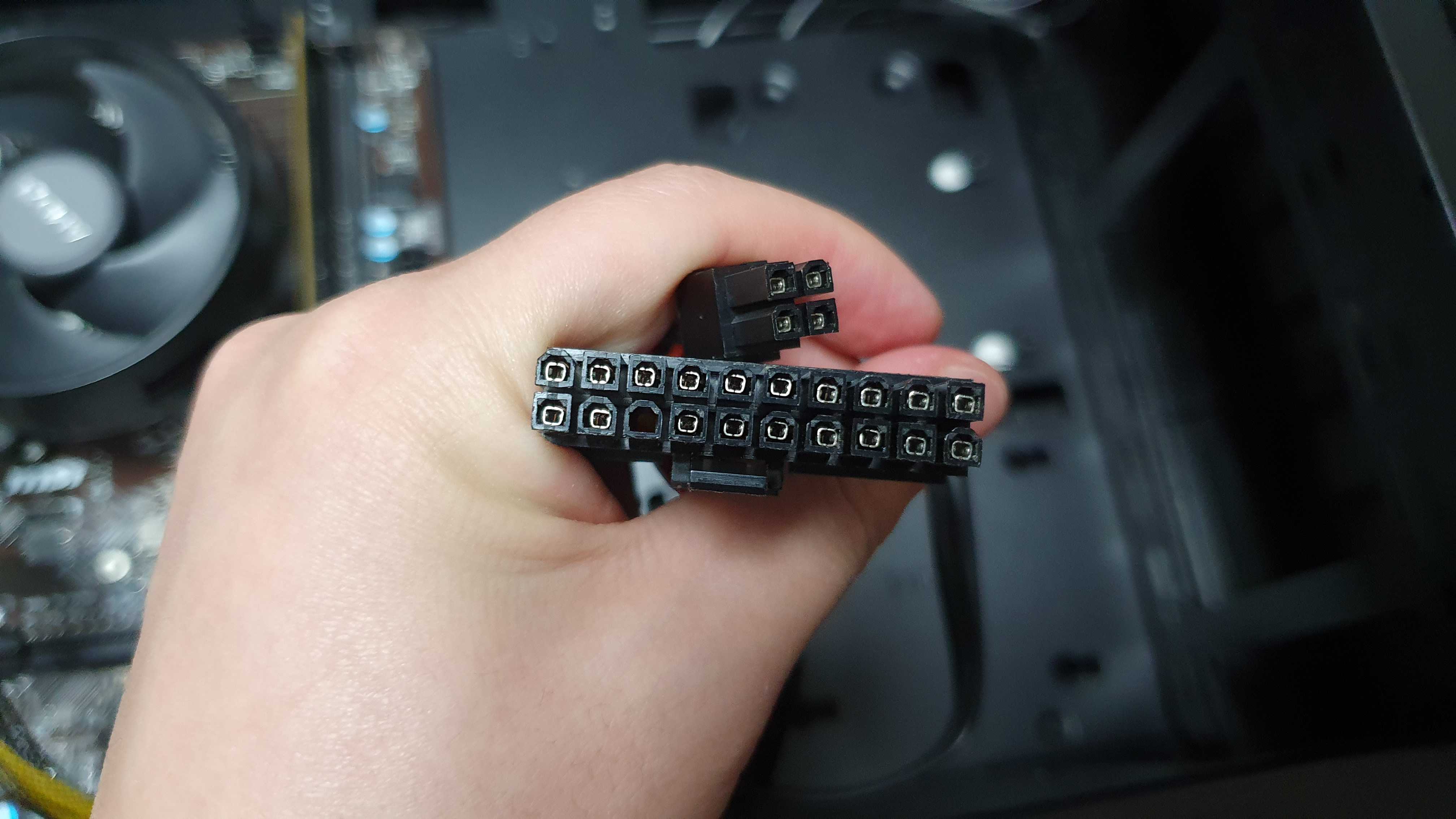컴을 조립했는데 전원이 안들어와서 파워와 메인보드 확인에 들어갔습니다. 파워 쇼트시켜보니 팬은 잘 돌아가는데 핀중 하나가 닿는 금속면이 없는데 이게 정상인가요? 0