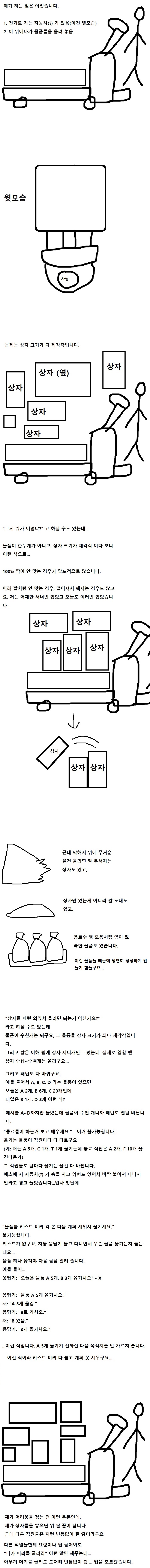 잘못 쌓았다고 물건 죄다 내려놓고 처음부터 다시 하는 것도 불가능하구요(직장 상사들이 하지 말라고 합니다...일을 빨리 해줘야 하니 몰래 하는것도 불가능하구요.)