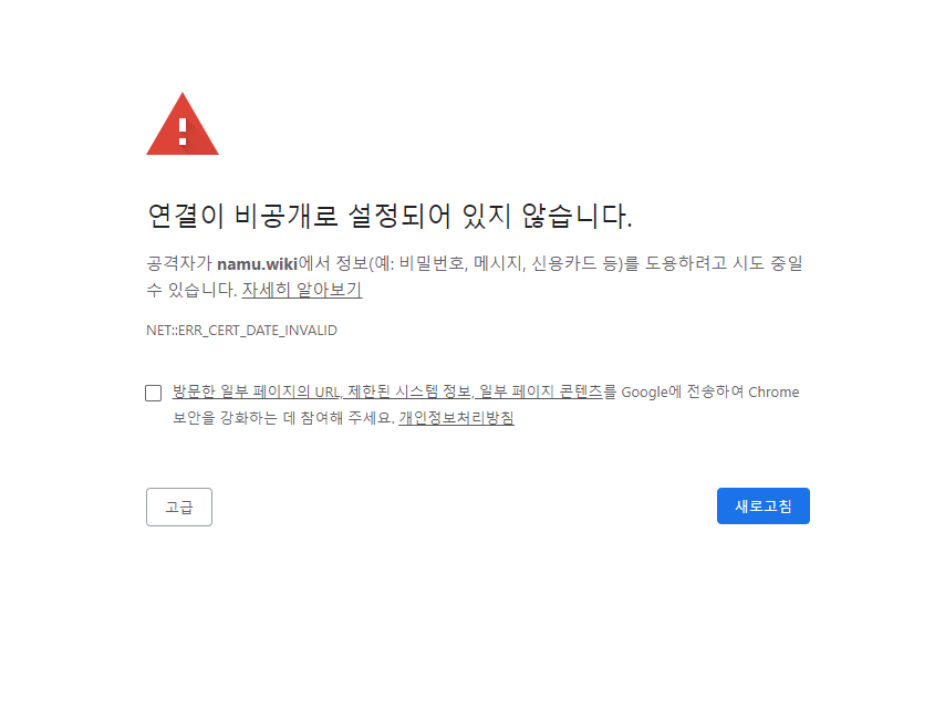 | Subject | 갑자기 어제쯤 부터 크롬에서 계속 이런 화면이 뜨는데 뭐가 문제일까요? |