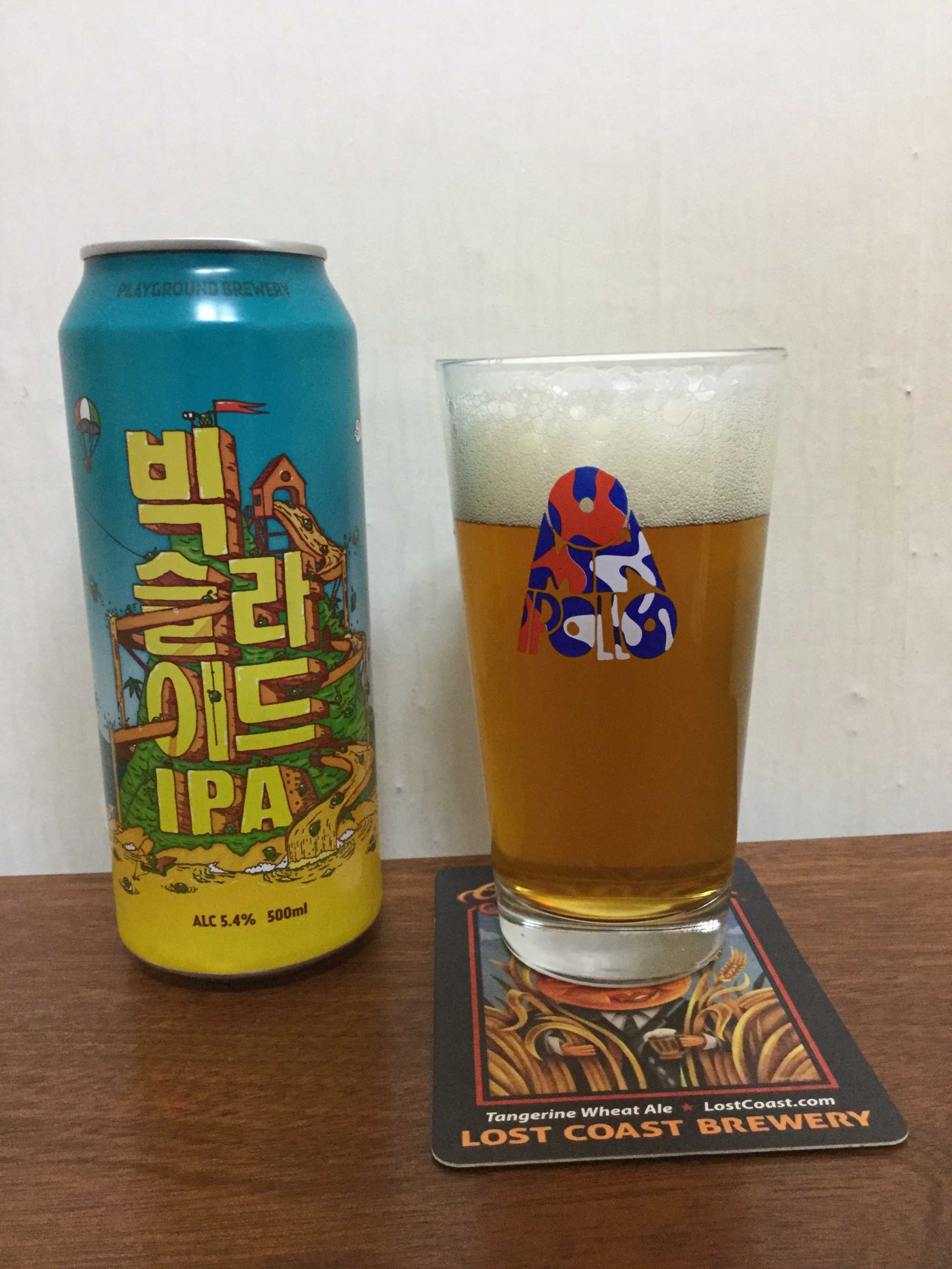빅슬라이드는 시트러스하고 열대과일스러운 홉 향을 순하게 잘 살렸으며 쓴 맛은 어느 정도 있으면서도 그렇게 세지는 않게 대중성을 고려한 듯 보입니다.