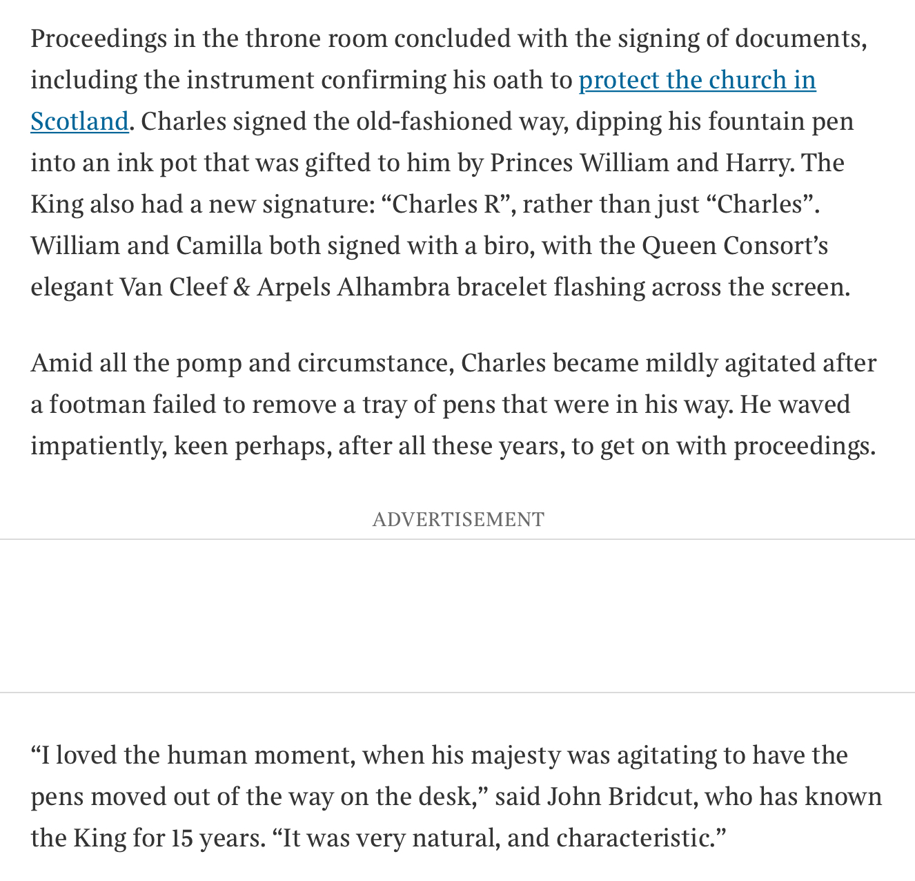 사실 저는 저 문서에 뭘로 서명하든 크게 관심은 없습니다만, 찰스 3세 입장에서는 개 짜증날만도 하다는 생각이 들었는데, 그게 왜냐면