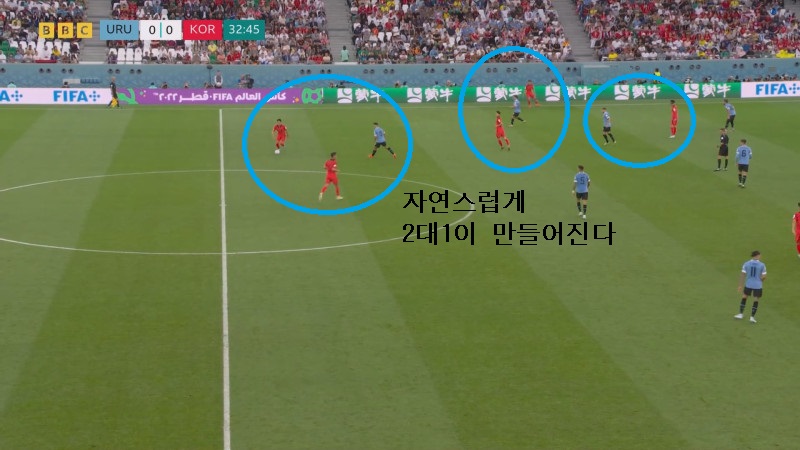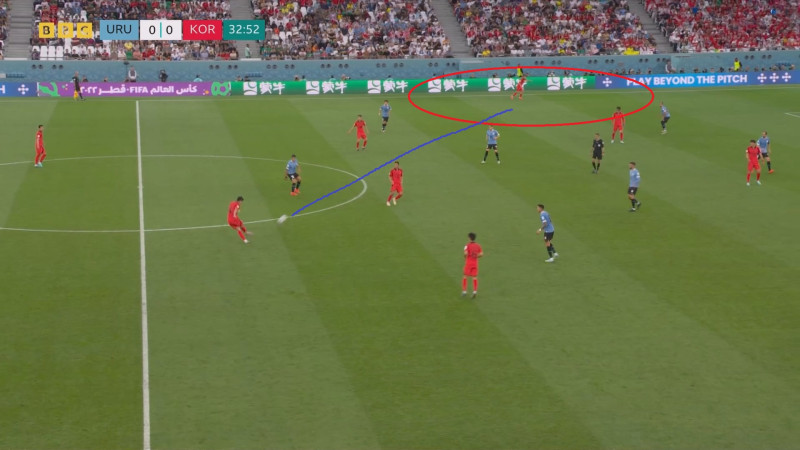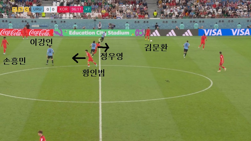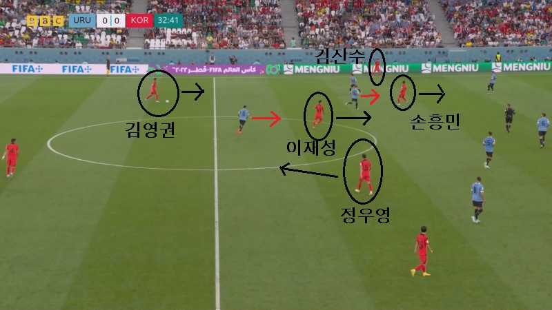 그렇다면 한국의 월드컵 경기 중에서 가장 훌륭한 경기력을 보여줬다고 하는 우루과이전의 빌드업은 어떠했을지, 상대적으로 뒤떨어지는 미드필더들의 기량을 보완할 벤투의 해법은 무엇이었을지 검증해봅시다.
