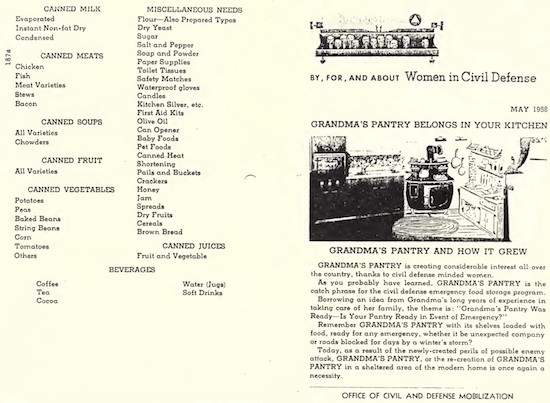 실제로 사용된 홍보물. Women in Civil Defense 라는 문구가 보여주듯이 이렇듯 비상식량을 준비하는 것이 민방위 활동의 일부로 여겨졌습니다.