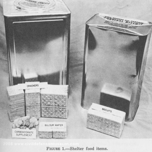 미국은 수백만 달러를 들여 연구한 끝에, 핵 전쟁 이후의 생존자들이 통밀 크래커를 먹으며 생존할 수 있을 거라는 결론을 내렸습니다.  그래서 미국 정부는 불구르에 옥수수 가루, 쇼트닝, 방부제, 콘 슈거, 소금 등을 사용해서 만든 크래커를 다목적 생존 크래커(All-Purpose Survival Cracker)라고 부르며 약 2억 8천만kg을 생산해 비축하기로 결정했습니다. 이 크래커는 1인의 1일치 식량이 단 37센트에 불과했다고 하니 딱 적당한 음식이었던 것이죠. 갑자기 폭주한 불구르 가공과 크래커 제조 수요를 맞추기 위해 미 국방부는 1961년 전국의 시리얼 회사들을 불러 모아 대책을 논의했고 잇따라 수백만 달러 짜리 공급계약을 맺었습니다. 1964년 프로그램이 종료될 때까지 200억개 이상의 크래커들이 생산되었다고 하니 그야말로 show me the money의 천조국의 위엄입니다.