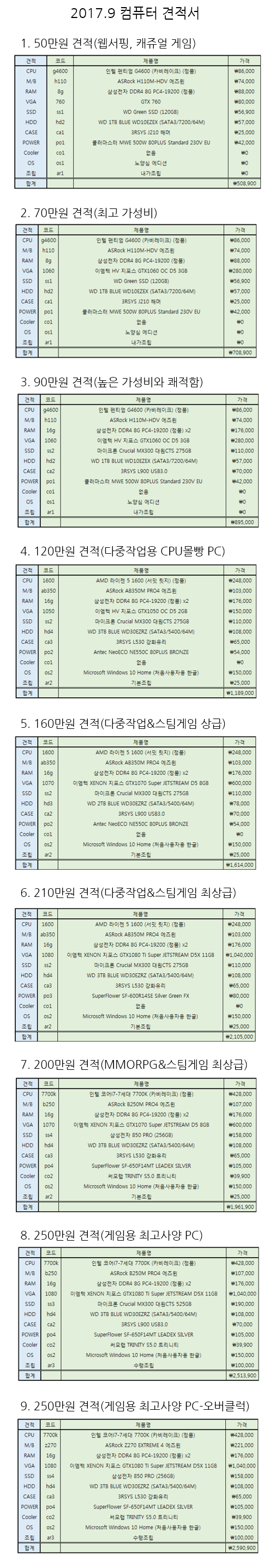 Subject   컴쫌알이 해드리는 조립컴퓨터 견적(2017. 9월)