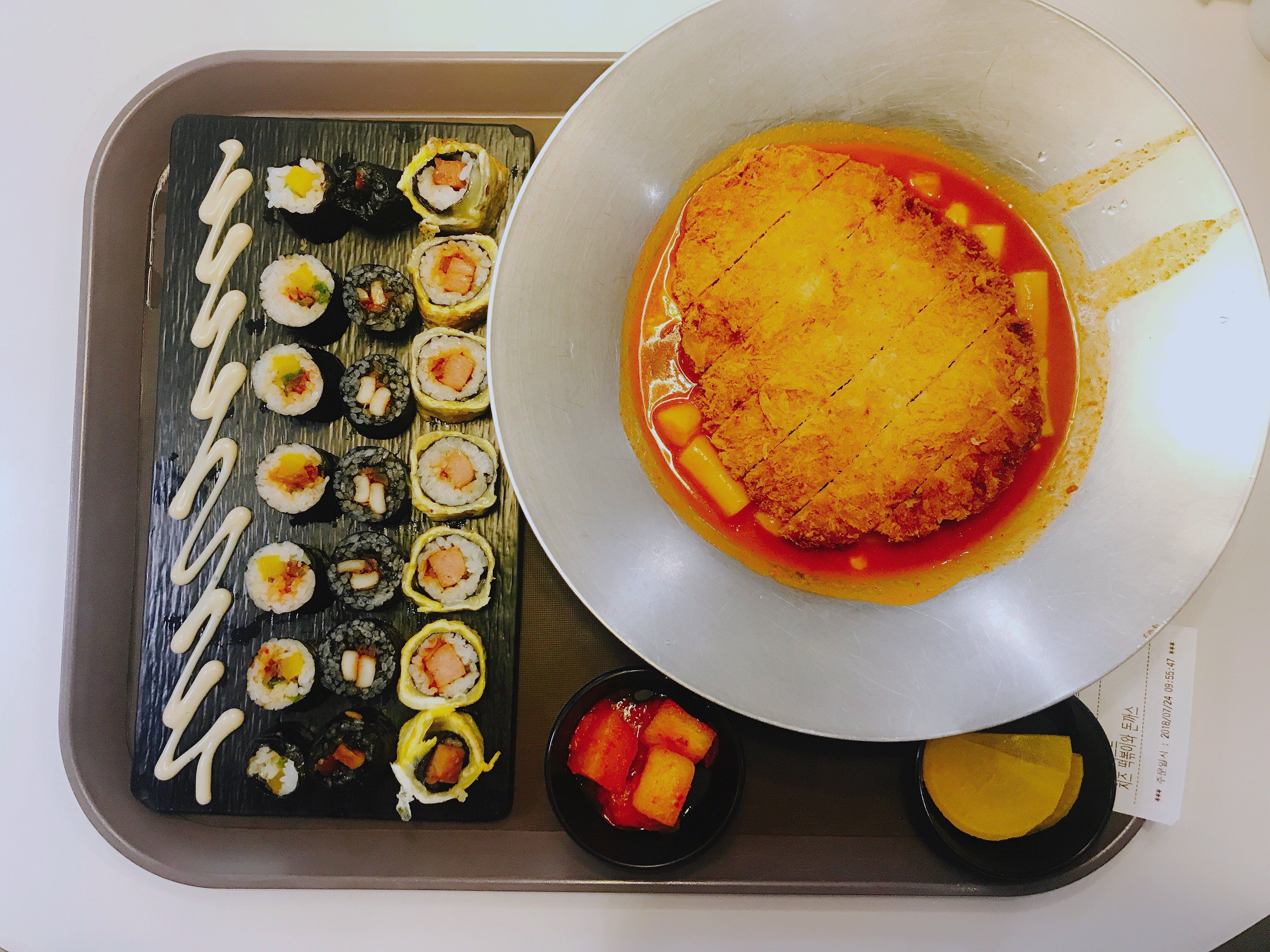 처음엔 진짜 간단하게 떡볶이를 먹으려고 했다. 하지만 돈가스 떡볶이라는 훌륭한 메뉴가 보이는 게 아닌가. 김밥도 고르지 못할거라면 다 시키는 게 아주 옳은 방법이다. 아무렴. 포크를 집으면서 전날 밤까지 새 놓고 이걸 먹을 수 있을까 하며 시작해 놓고는, 생각보다 잘 들어가네 하며 그릇을 싹 비웠다. 예전에도 이랬던 적이 몇 번 있던 것 같은데. 결국 늦도록 떡볶이를 먹다가 면세점 쇼핑은 하는둥 마는둥 하고는 바로 비행기를 탔다.