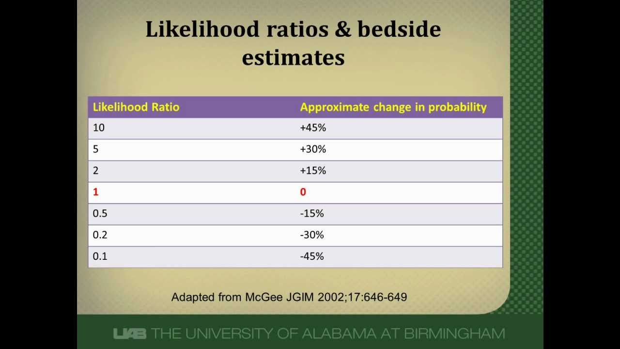 결국엔 검사, 병력, 신체진찰의 정확도를 확인하기 위해서는 위의 '우도비'란 개념을 사용하게 됩니다.