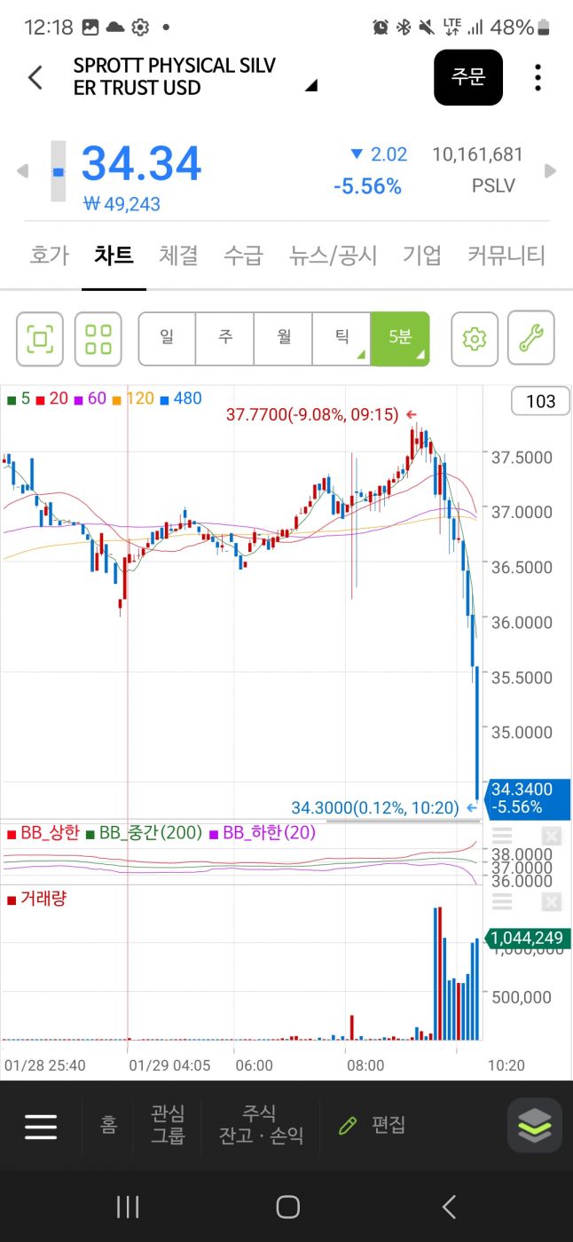 22일에 은 시장에서 무지막지한 공매도가 나왔읍니다. 대충 45.5백만 온스짜리 종이 은 드랍이 15분만에 튀어나왔지요. 그래서 일시적으로 은이 폭락을 했읍니다.