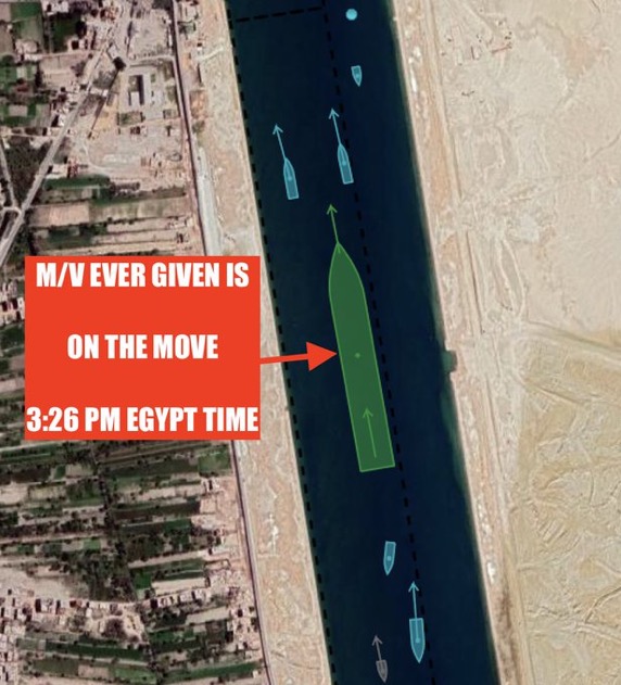 #BREAKING #Suez Canal Authority Reuters report, saying that the Ever Given vessel has successfully floated and entered the canal's navigational watersection.#SuezCrisis #suezcanel #السفينة_الجانحة #قناة_السويس pic.twitter.com/GyITfb11Tq