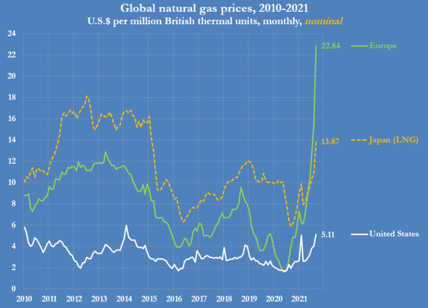 유럽 외에 북미, 동아시아 가스 가격도 급등했습니다.