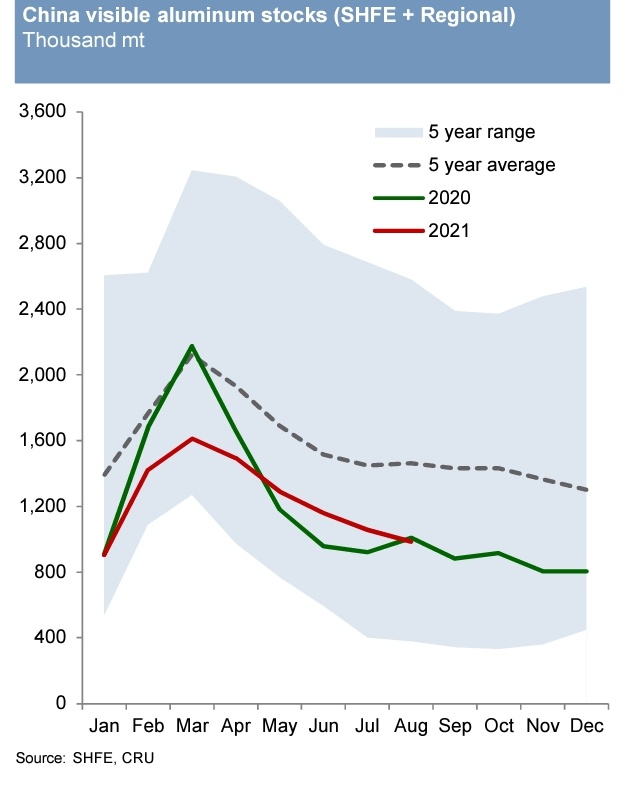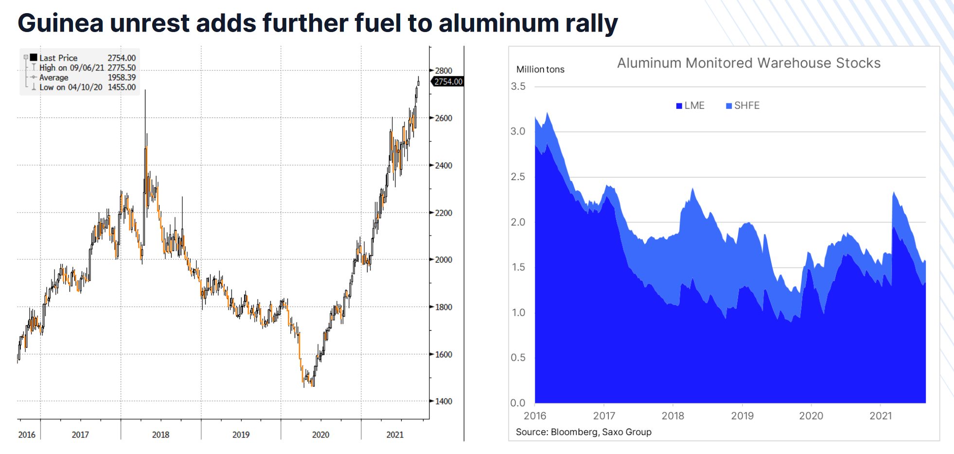 기니 쿠데타 이전에도 중국의 환경 관련 규제와 수요/공급 문제로 10년래 최고가를 기록했었습니다. 지난주 월요일에도 중국 광시(좡족자치구)에서 알루미늄과 철강 생산량을 줄일 것이라는 보도가 나왔었습니다. 여름에는 윈난성에서 가뭄으로 인한 수력 발전량 감소, 전력 부족으로 알루미늄 생산량에 타격이 있었습니다. 중국 당국(과 협회 등)에서는 가격이 말도 안 된다며 투기를 잡겠다고 합니다만.