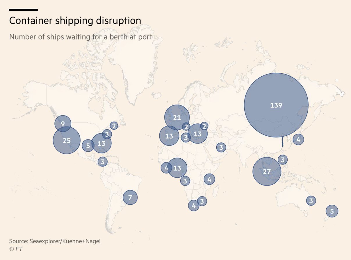 델타 변이 확산으로 항구들 적체는 더 심화되고, 컨테이너 운임 등은 더 올랐고, 반도체 주문 후 평균 소요 기간도 20주를 넘겼다고 합니다.
