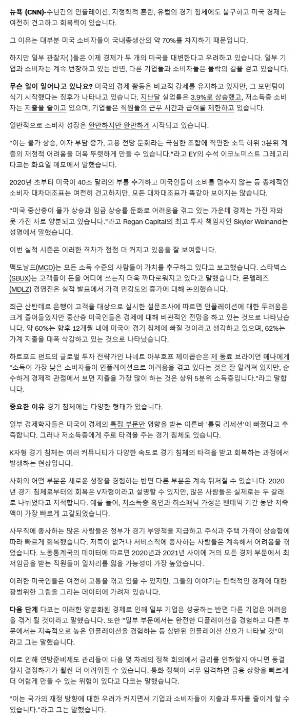고금리로 물가는 치솟은 상태고, 고용지수 자체는 건실하다지만 정작 고임금 직장은 잇따른 해고로 일자리 자체가 사라진 상태입니다.