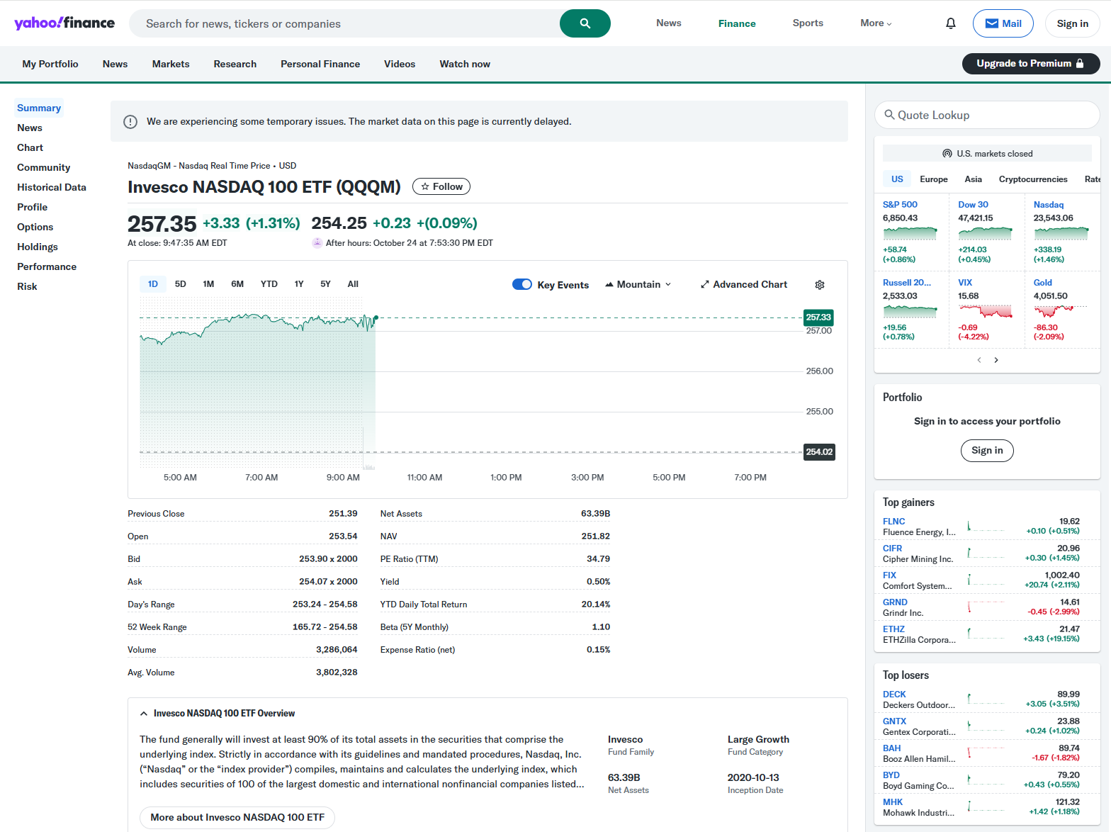 얘가 처음 나왔을 때 "QQQ가 너무 비싸요" 해서 QQQ의 2/5가격 정도로 출시됐었는데, 이제는 얘가 출시 당시 QQQ 가격 근접이군요. 지금은 1.2% 더 올라서 257불.