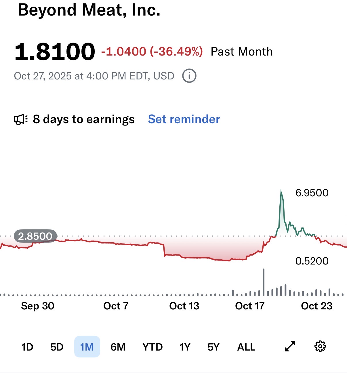 27일 한국예탁결제원에 따르면 최근 일주일(10월 18일~24일)간 국내 투자자는 비욘드 미트 주식 1억7869만달러어치(약 2500억원)를 순매수 결제했다. 같은 기간 미국 주식 순매수 결제 규모 가운데 9번째로 컸다.