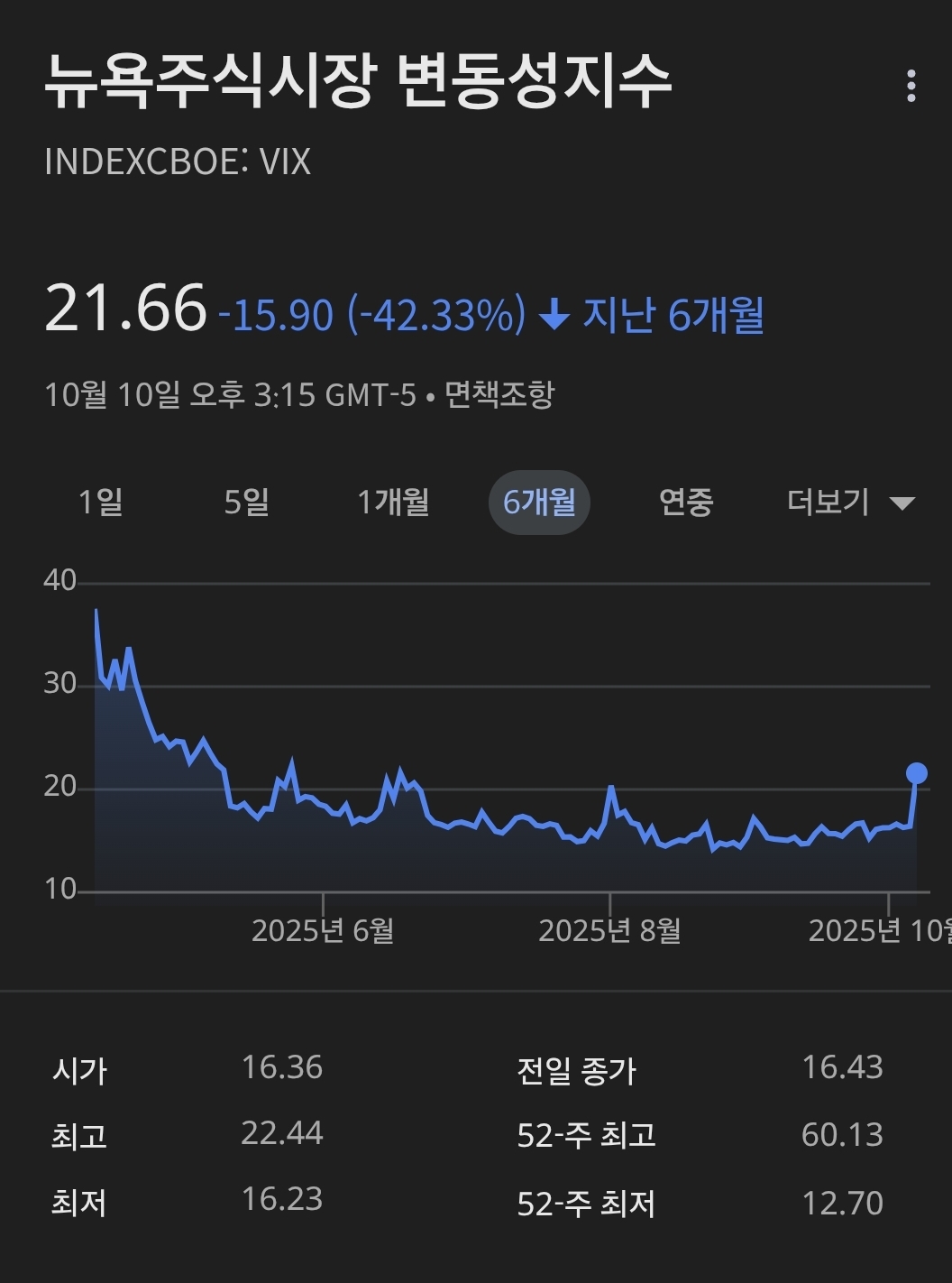 전 지난주 미장을 보다보니 셧다운도 하고 이런저런 불안한 요소가 많은 상황에서도 눈치보며 슬금슬금 오르는게 이상하다 싶어, 주식 정리하고 수요일 전고점 근방에서 금으로 갈아탔습니다.