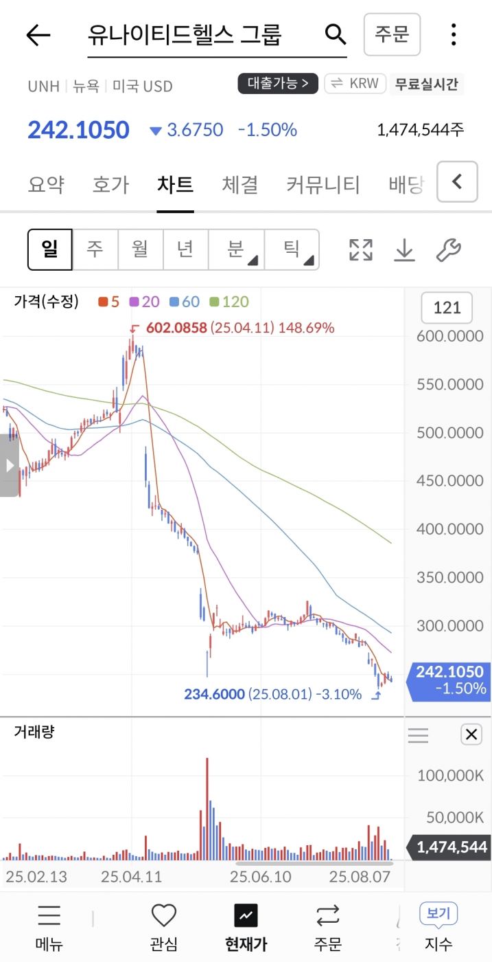 종목 A 5일 5퍼 손실 스탑 걸어놓음 - 6일 지나고 5퍼라인 깨짐