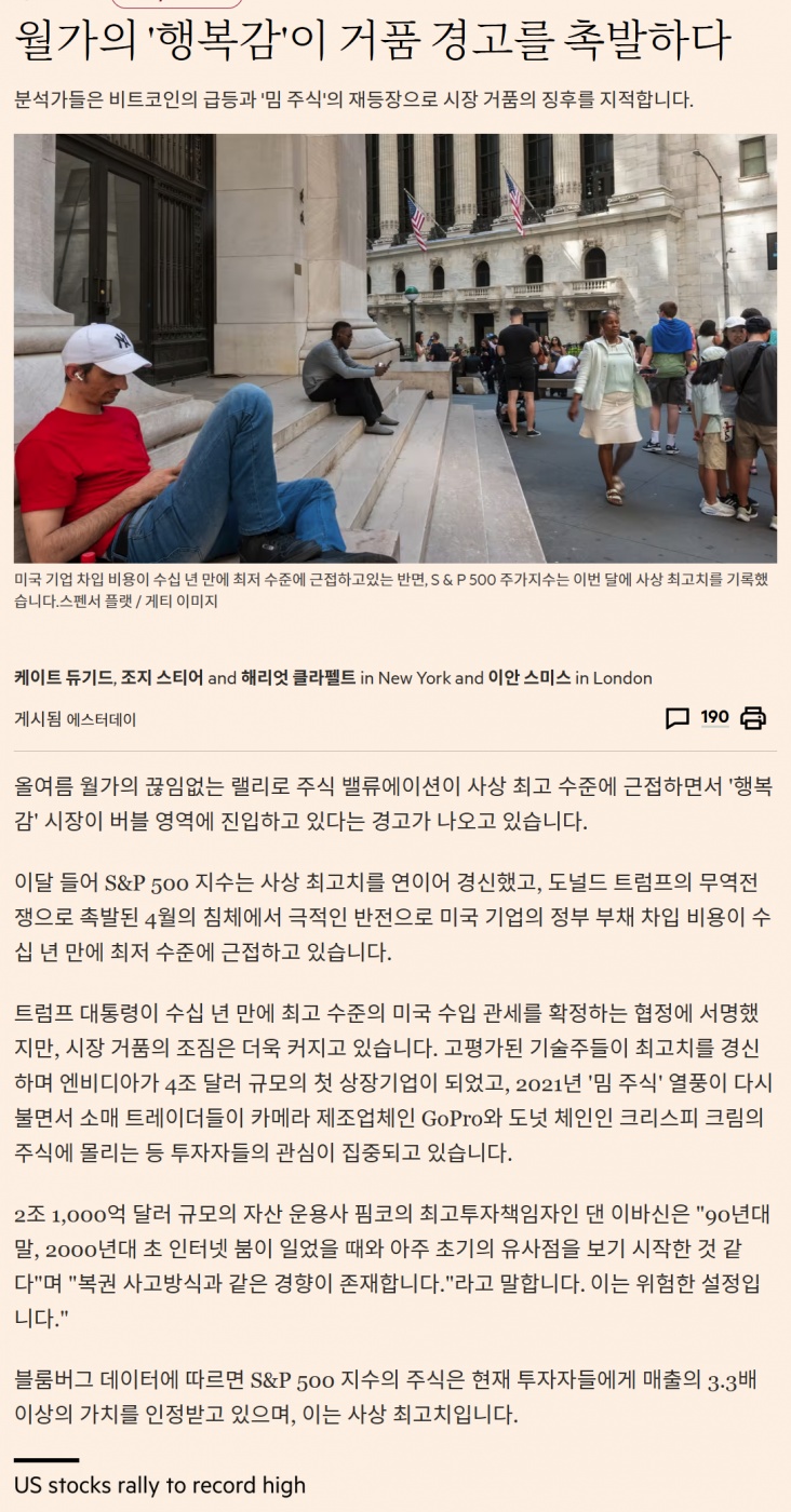 -Analysts point to signs of market froth as bitcoin soars and ‘meme stocks’ re-emerge (구독자용)