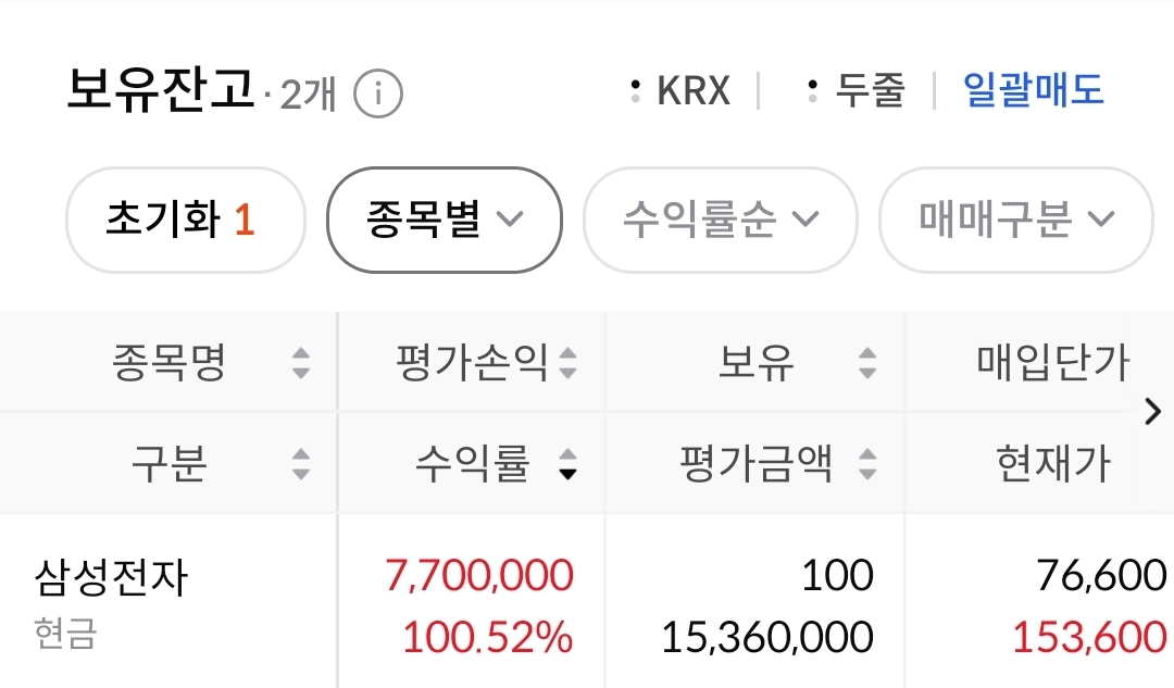 둘째 계좌가 수익률 100%를 돌파했네요.