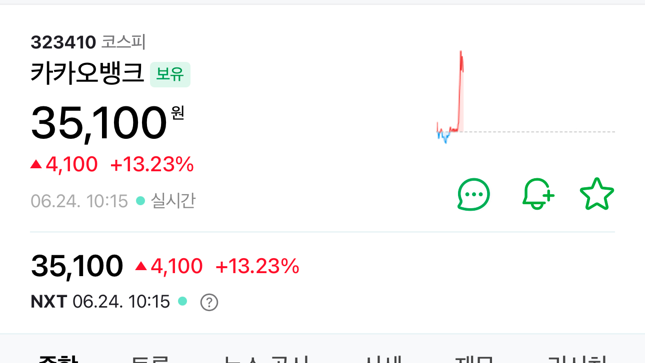 카카오페이 거래정지 되니까 카뱅으로 온건지 뜬금 떡상중… 엉엉 탈출각 보이나…