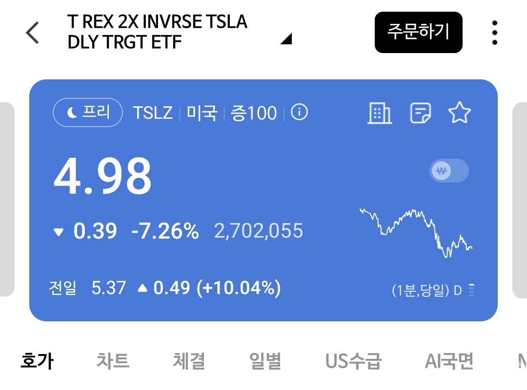 프리마켓은 뭐하는 애들인지 모르겠음. 영국장에서 테슬라 인버스가 떡상중인데, 미장 프리마켓에서는 인버스상품 떡락중인게 반복되거든요? 그리고 정식장 오픈이면 여지없이 떡상.