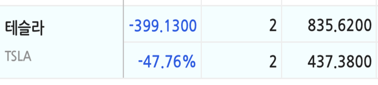 뒤늦게 테슬라에 정찰병 두명 보냈다가 이꼴. 손절도 의미없어 보이는데 그냥 둬야겠죠? 😭