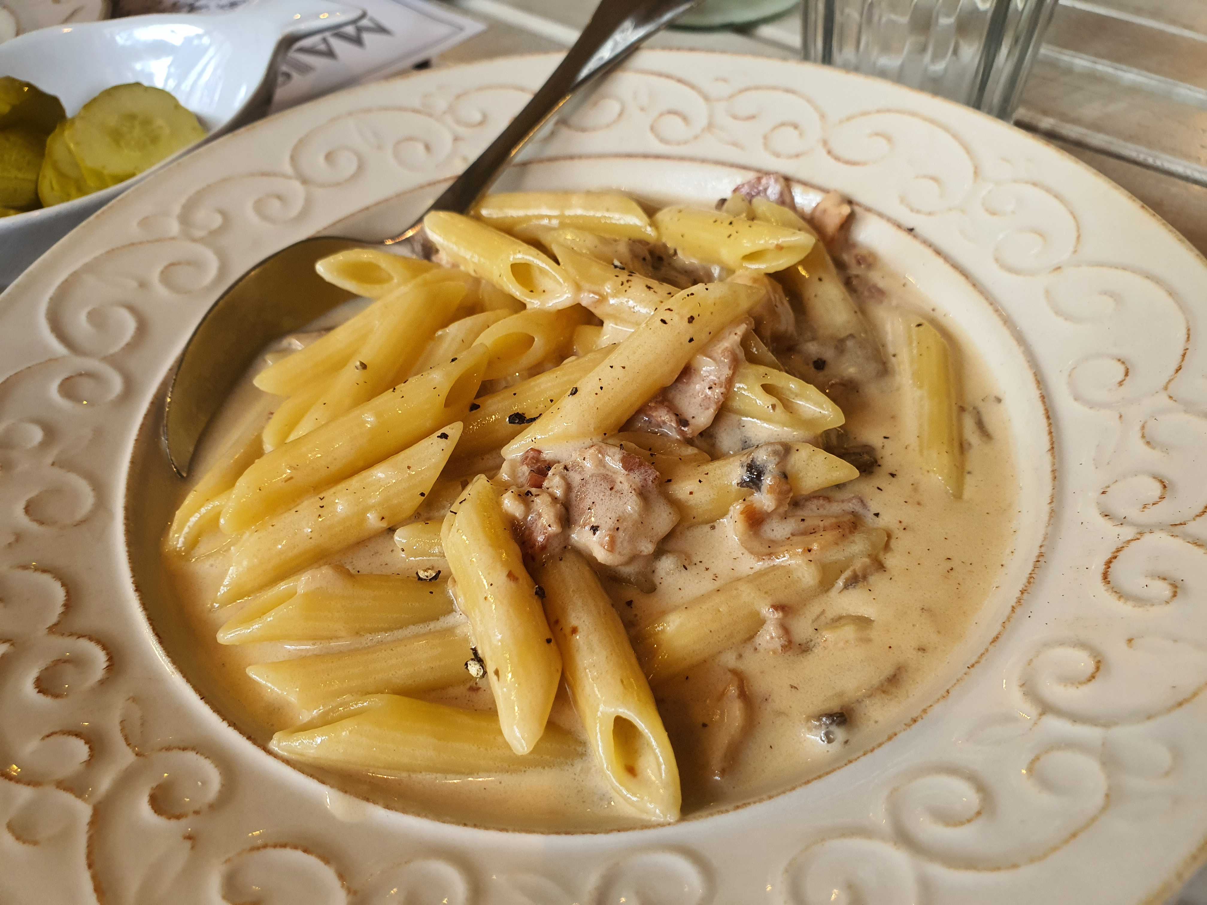 파스타는 두종류 밖에 없었고 제가 별로 안 좋아하는 펜네 밖에 없었어요. 그중에 크림 골랐는데 14000원을 훨씬 뛰어넘는 존맛탱이었습니다. 이태리 잘하는 곳 꽤나 많이 가봤는데 파스타는 워낙에 다 잘해서 탑이다!는 아니어도 뒤떨어진다고 생각 안 들었고 특히 피자는 대박 오브 대박입니다. 근데 파스타도 제가 먹어본 펜네 중에서는 제일 맛있었어요.