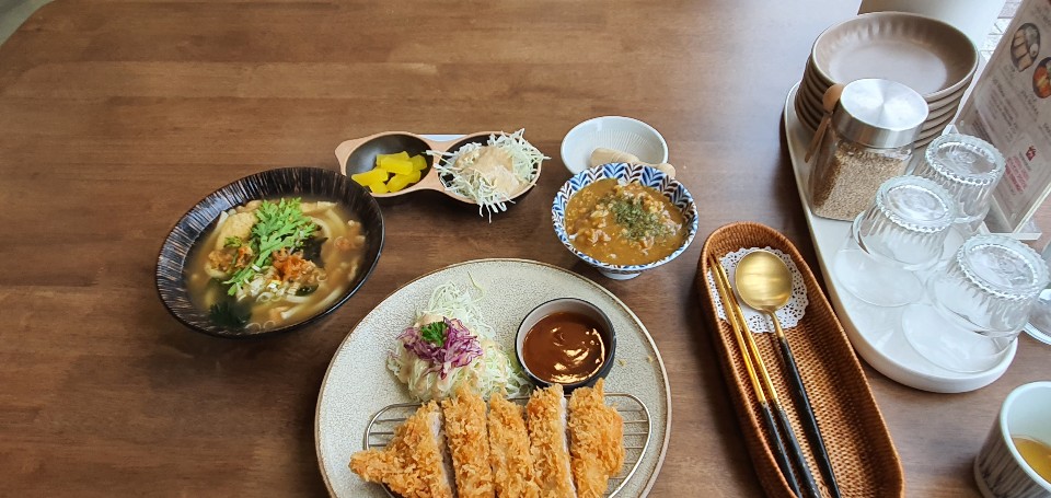 돈까스 가게를 카페처럼 꾸며서 겉보기엔 카페 같아요.