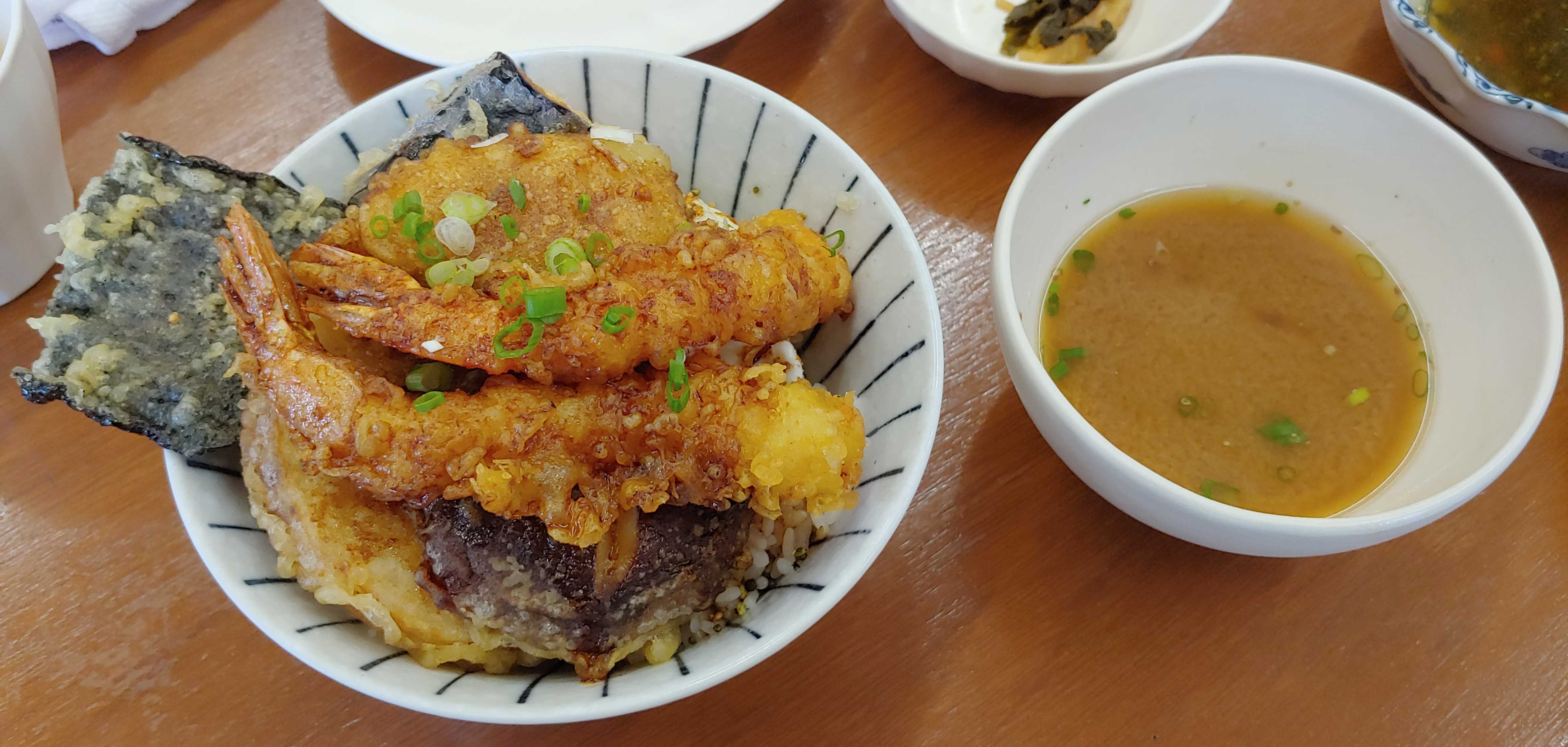 텐동집입니다. 하지만 제가 생각하는 이곳의 시그니처는 치즈(리코타?)가 들어간 토마토샐러드(소스가 너무 맛남)와 제철해물로 육수를 낸 미소된장국(리필가능. 제가 갔을때는 매번 가을꽃게육수가 나왔습니다. 너무 맛나서 요번에도 리필 ㅋㅋㅋ)입니다. 요거 2개가 생각나서 광안리 갈때마다 갔던듯. 텐동도 중상은 합니다.