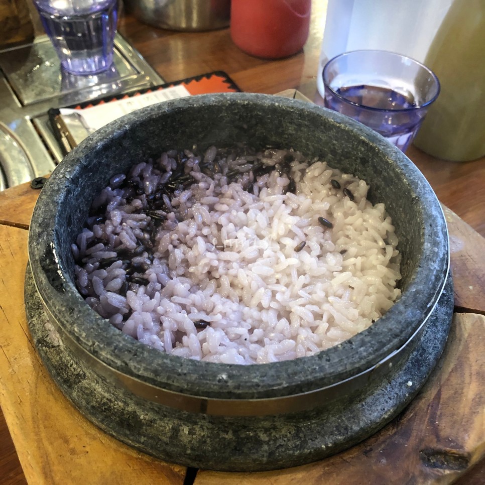 공기밥 대신 흑미 돌솥밥이 나오는데 그냥 공기밥으로 바꿀 수도 있습니다.