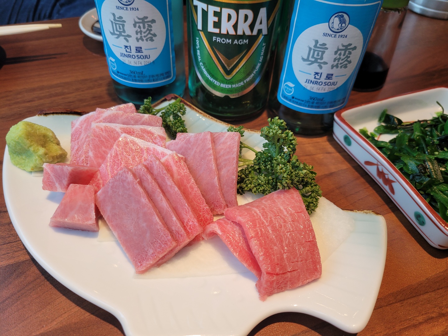 가자마자 주문해야하는 건 참다랑어 대뱃살하고 명란오이