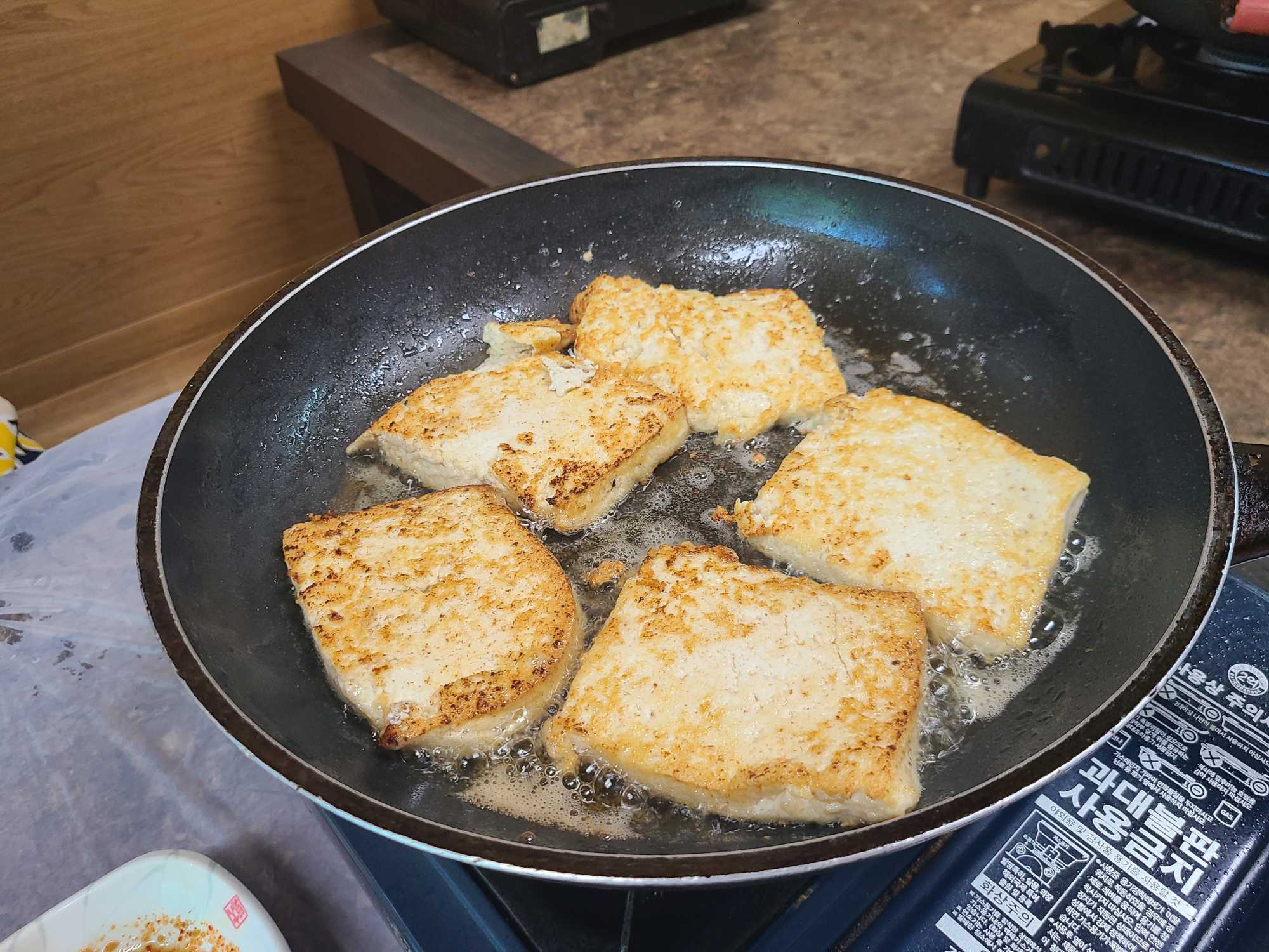 찌개와 구이를 먹어봤는데, 찌개는 그냥 맛있는 두부찌개였고 두부구이는 아주아주 맛있었습니다. 일단 두부 자체가 좋은 두부이고, 구이에 자작하니 깔려 있는 기름에 뭔가 마법을 부린 것 같습니다. 기본적으로 들기름냄새가 나는데, 들기름만 있는 건 아닌 것 같습니다. 구워주시지는 않고, 세팅해서 내오시는 것을 밥상 앞에서 직접 구워야 합니다.