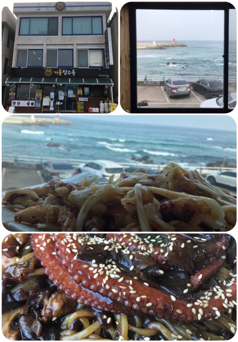 그래도 웨이팅 4팀 중 창가쪽 자리 차지해서 기뻤습니다. 2층 5번과 7번이 창가쪽 자리였고 바다뷰가 아주 죽여줬습니다. 파도치는 바다를 보며 먹는 탕수육과 짜장면이란… 옆에 있는 45개월 18개월 아가들이 손으로 짜장면을 먹으며 옷과 얼굴에 문질러대도 하하하 하고 너그럽게 웃으며 용서가 되는 맛입니다.