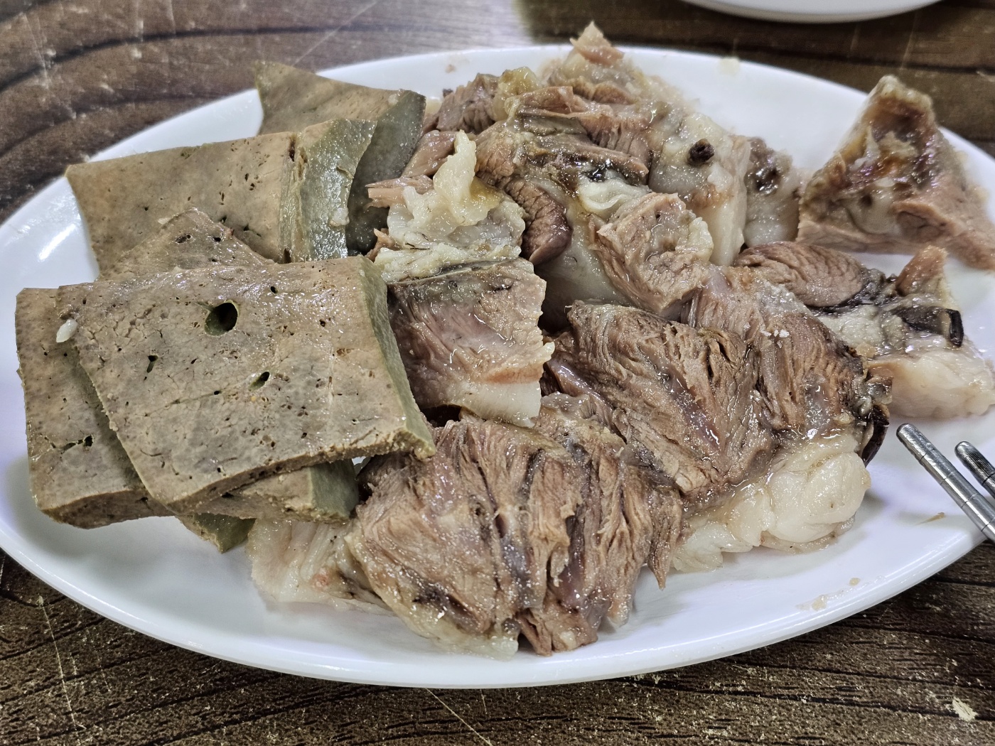 정확히 말하면 '순대국'이 1만 원이고, '순대국 정식'은 1.3만 원으로 순대국에 +로 머릿고기를 비롯한 부속고기&간이 나오는 건데 바로 그 머릿고기와 간이 저런 형상입니다. 저는 소식가라 저것에 맥주나 막걸리만 곁들여 먹어도 한 끼로는 충분한데, 정식을 시켜버렸기 때문에 순대국까지 먹는 가혹한 식고문을 당해야 했음...