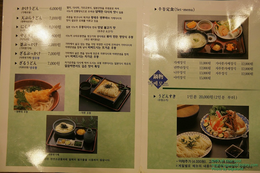 이 집의 장점은 탱탱한 면발이 되겠고요. 슴슴한 우동 국물.. 특히 일본 간장 외에는 첨가 하지 않은 가케우동이 인기가 있습니다. 뭐 기름기 좀 좋아하는 분들은 덴뿌라 우동도 시키고요.. 3000원인가 더 주면 덴뿌라와 롤이 같이 있는 정식도 나오기도 했었습니다만 요즘은 5000원을 더 줘야 되는군요. 좀 비싸네요.