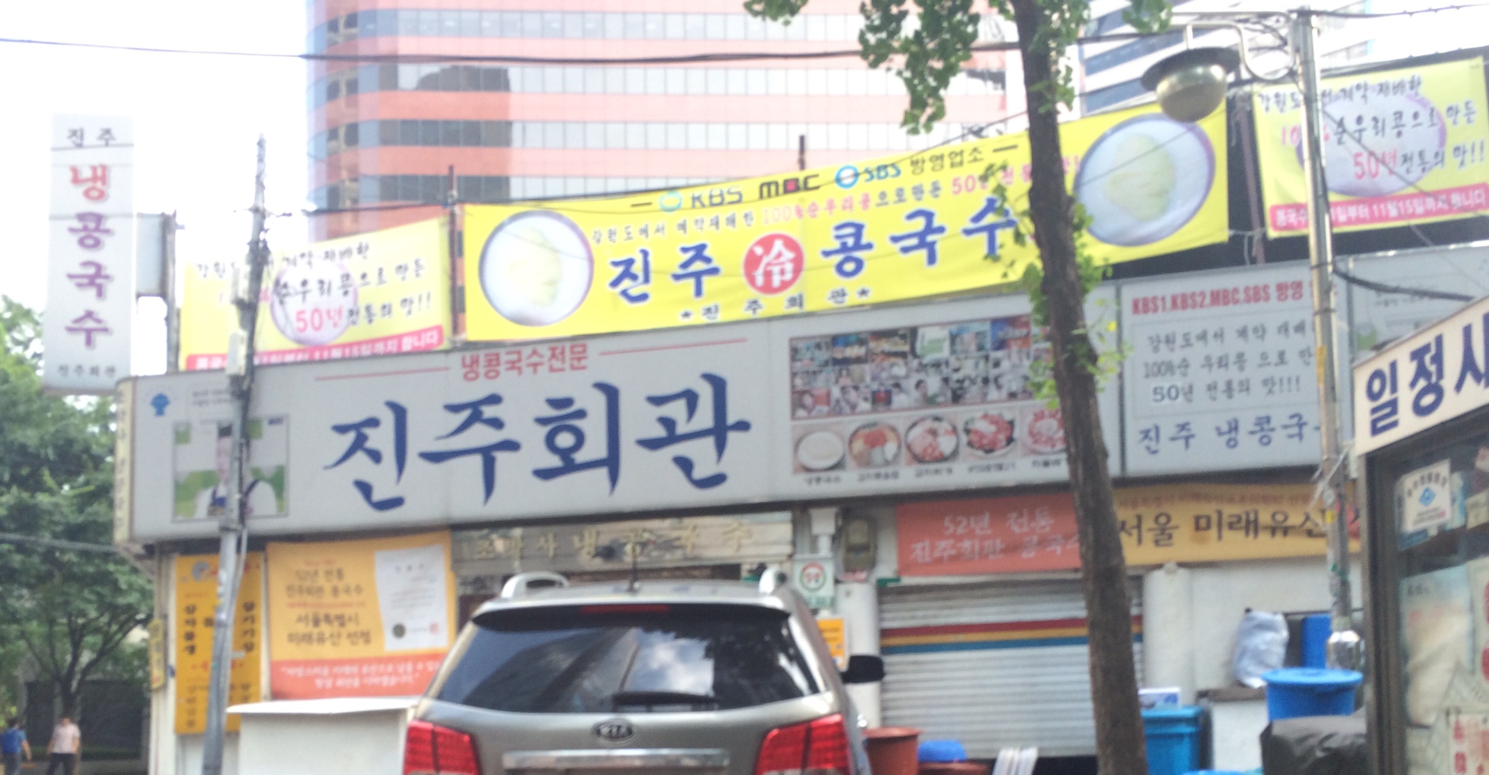 많은 분들이 알고 계실 것 같지만 다시 한번, 추천하는 콩국수 맛집 진주회관입니다.