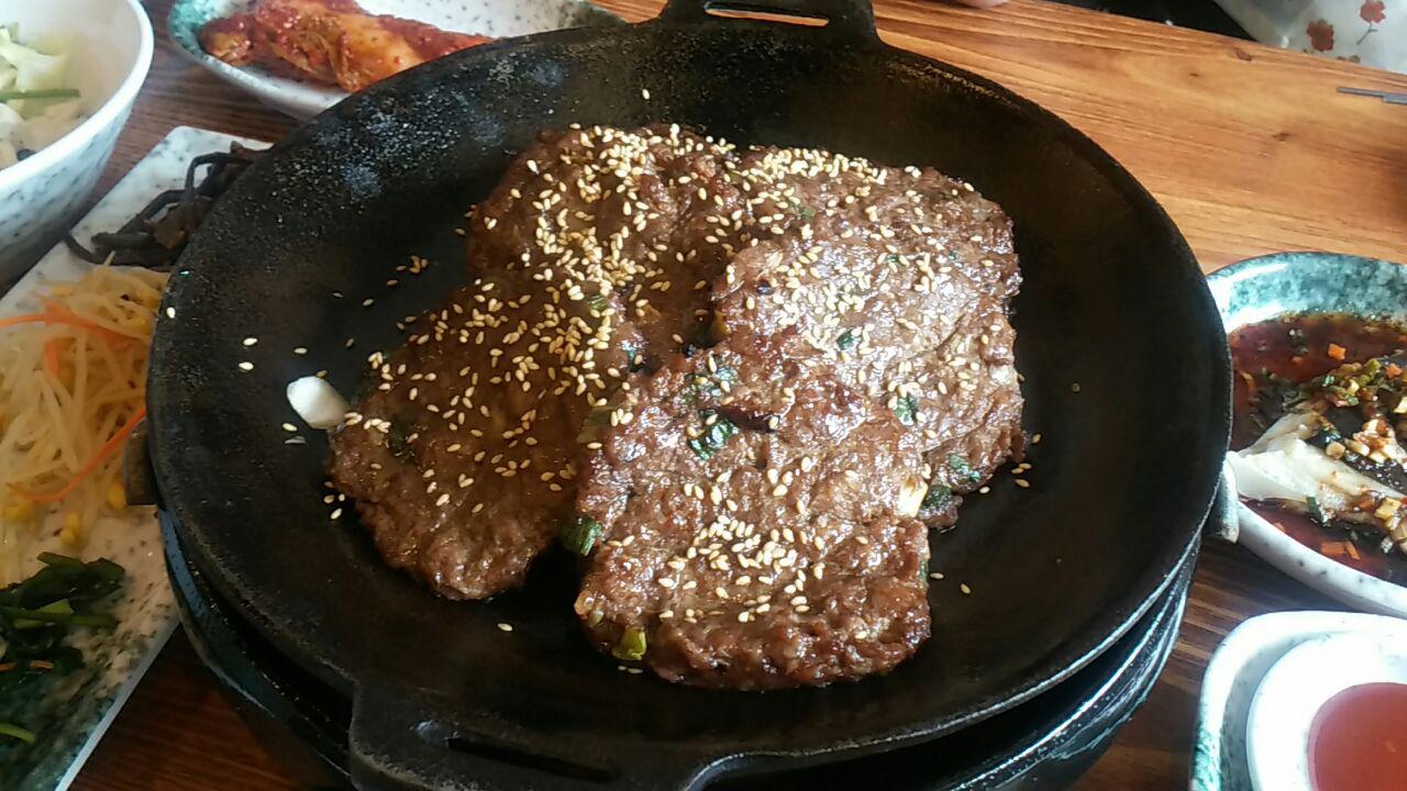 주문한 메뉴는 돼지떡갈비 정식이었습니다. 정식으로 시키면 1인당 떡갈비 2개 + 밥or냉면인데 백반집 수준은 아니지만 반찬이 은근 있어서 밥이 땡기고, 냉면이 괜찮아서 냉면도 땡기고 뭐 그렇습니다. 평소에 떡갈비를 즐겨먹는 편은 아닙니다만 먹어본 것 중에서 가장 맛있었고, 식사 끝난 뒤 돌아다니다가 포장주문하려고 한 번 더 방문하기도 했습니다. 브레이크타임 걸려서 결국 못 사고 발길을 돌려야했습니다만...