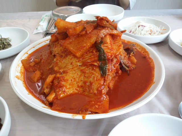사진은 모듬생선찜 소(小) 사이즈입니다. 평창휴게소 즈음에 미리 전화해서 예약해둬서 빨리 먹을 수 있었네요.