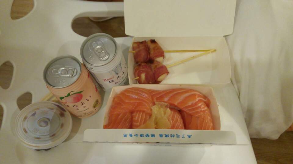 다녀왔습니다. 각종 관자나 닭꼬치 같은 것도 팔지만 빅사이즈 연어 초밥이 가장 유명합니다.