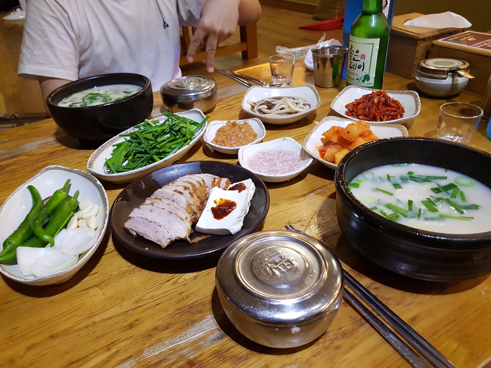돼지국밥이랑 수육백반 시켰는데 국물도 따로 주더군요. _-)b 살짝 감동. 저렇게 먹고 만두도 또 시켜 먹었네요.