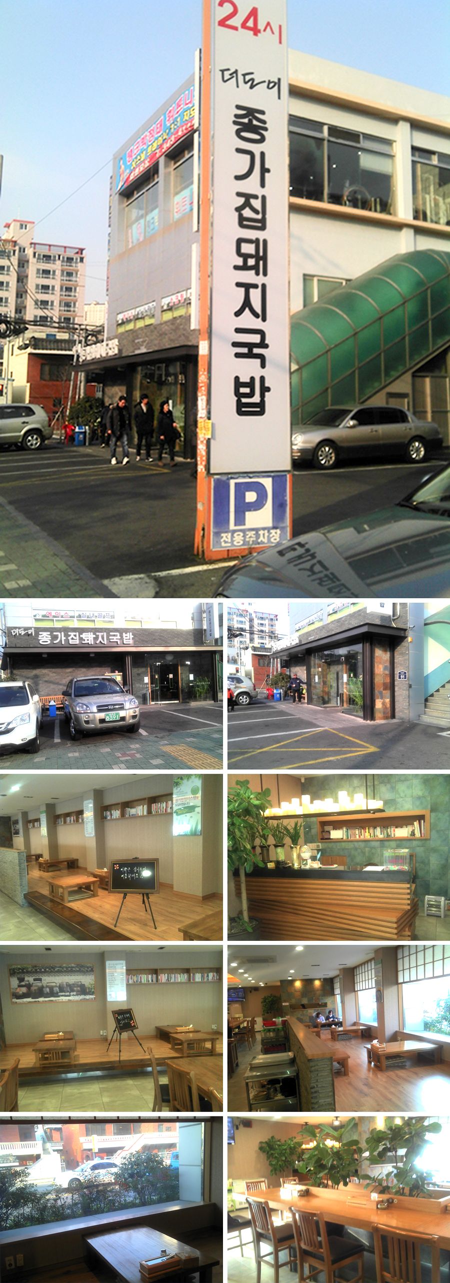 돼지국밥 프랜차이즈인데 다른 곳은 안 가봤네요. 덕천역과 숙등역 사이에 있구요. 밥 먹으러 오는 건 물론이고 24시간 영업이라 한밤중에도 오는 사람이 많습니다. 밥집에서 술집으로 변하죠 ' -');; 달린 다음에 해장(술-_-;) 하러 오기도 하구요. 보시다시피 혼자 먹을 수 있는 자리도 있습니다.