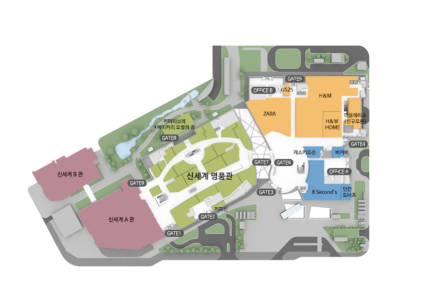 영등포 타임스퀘어 1층 H&M매장 반대편에 위치하고 있습니다.