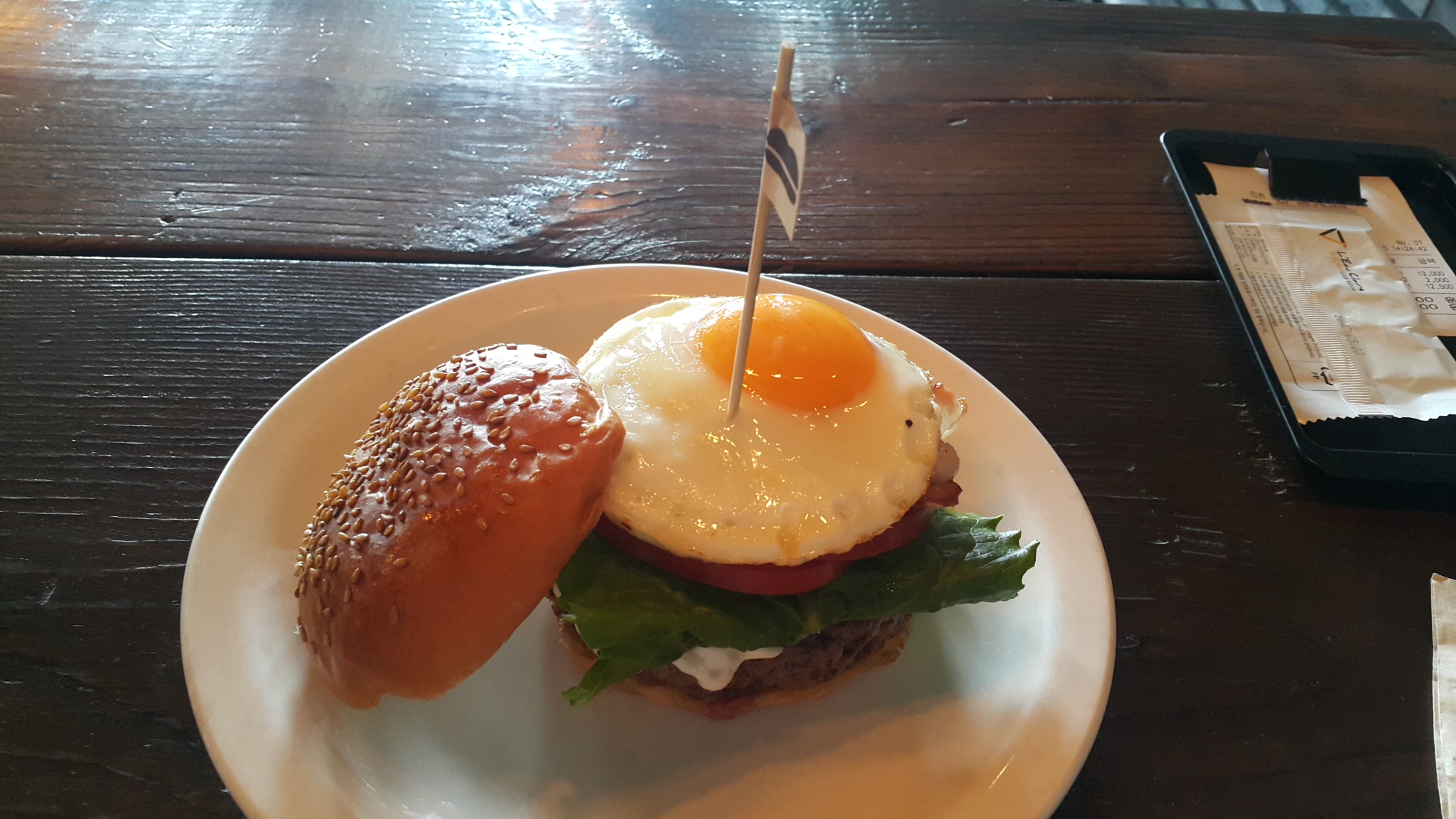 저는 '트라토리아룸'이라는 버거에 토핑으로 베이컨, 달걀프라이를 추가 했습니다.