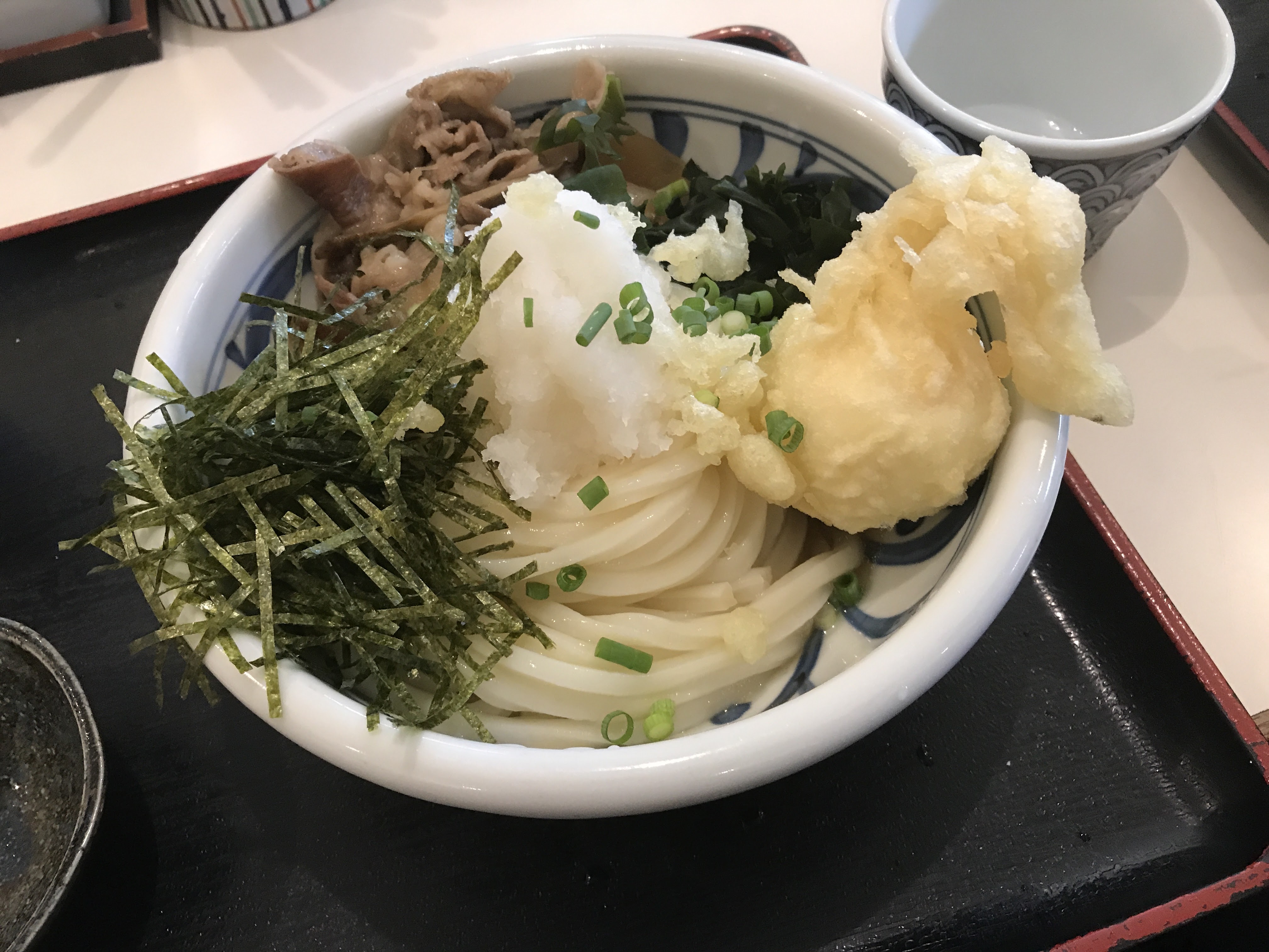 생각대로 엄청 쫄깃한 면발이었고요 또 저 위에 올려진 텐뿌라가 제대로인데, 보통 일본 우동집은 미리 튀겨놓은 바삭바삭한 튀김을 골라서 고명으로 올리곤 하잖습니까? 근데 여기는 뭘 올릴건지 선택하면 튀겨서 올려줍니다. 계란이 반숙 상태로 튀겨져서 올려져있는데 어떻게 튀긴건지 신기하기도 하고, 신선한 계란을 쓴다는걸 알겠거라고요.