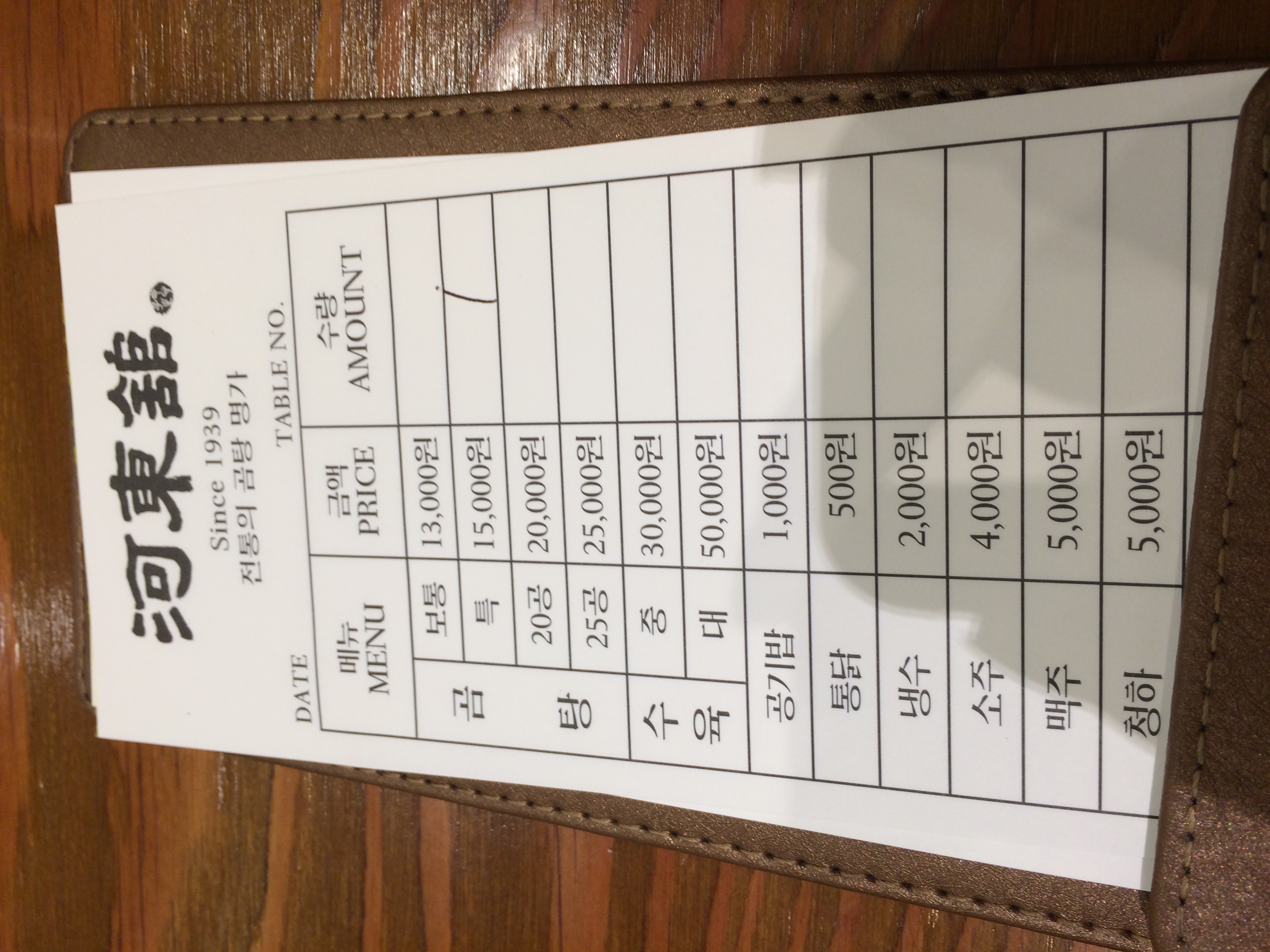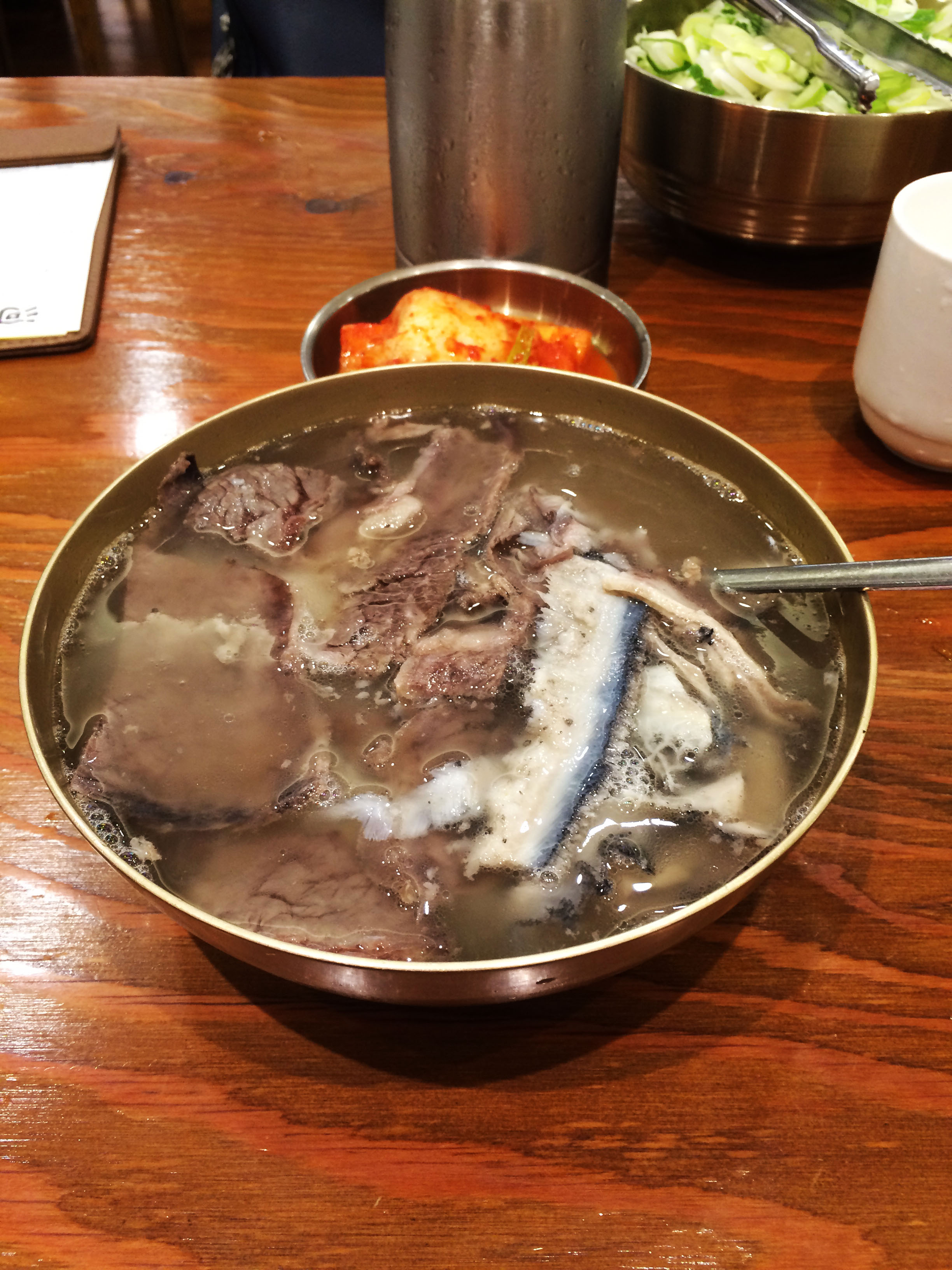 그 이후로 가끔씩 하동관을 들어갑니다. 자리에 앉고, 주문을 하고, 곰탕이 담겨진 큰 그릇을 받고, 이 과정이 약 3분도 걸리지 않습니다 (항상 들어갈 때마다 시계를 보면서 체크합니다.).  그리고 저는 메뉴판과 나온 음식을 보면서 마음을 잡곤 합니다. '아  XX 열심히 살아야지, 돈을 함부로 쓰지 말자, 시간을 소중히 하자.'