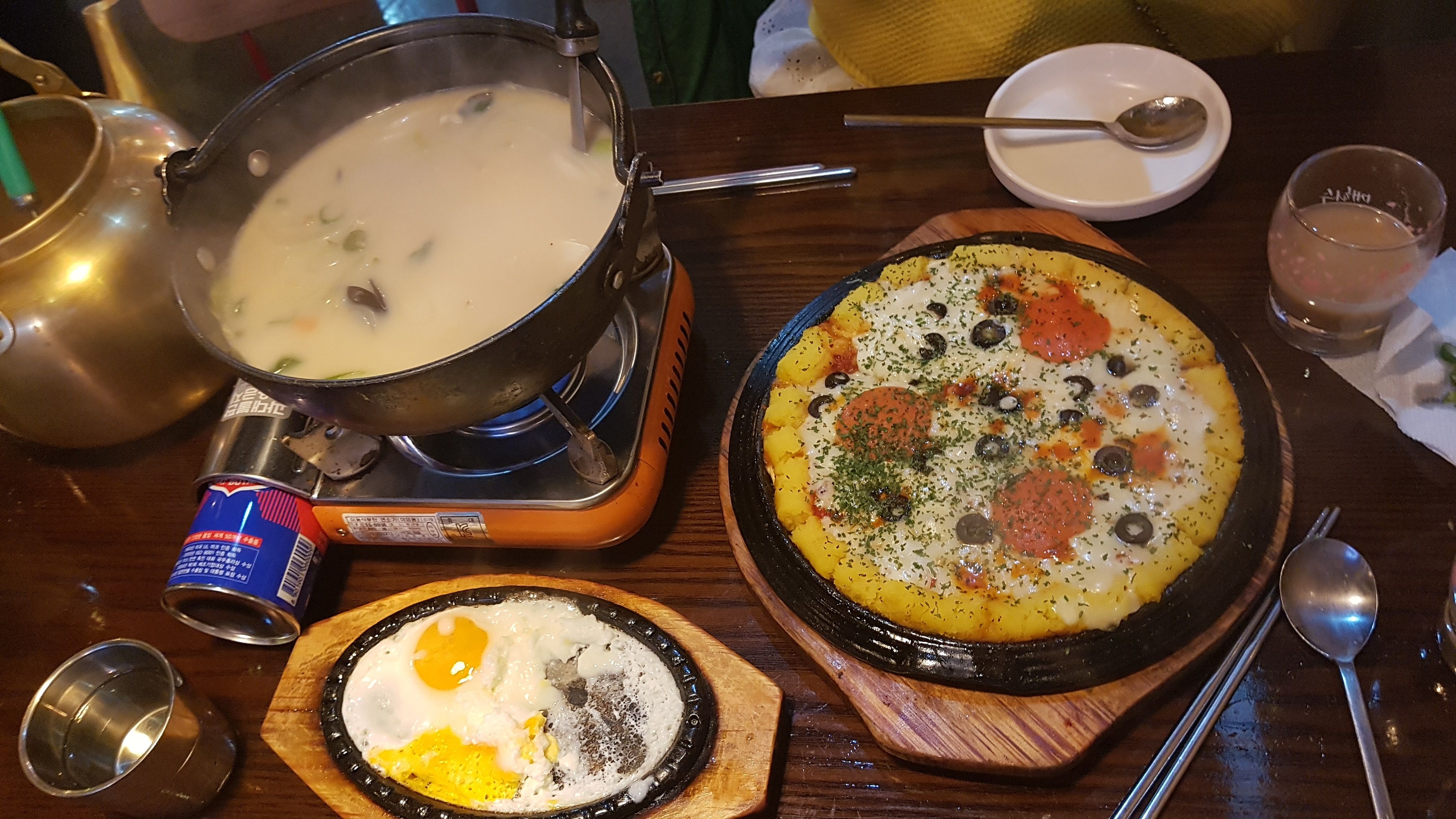 일요일 : 시원한조개탕 + 삼겹살피자 + 미숫가루소주